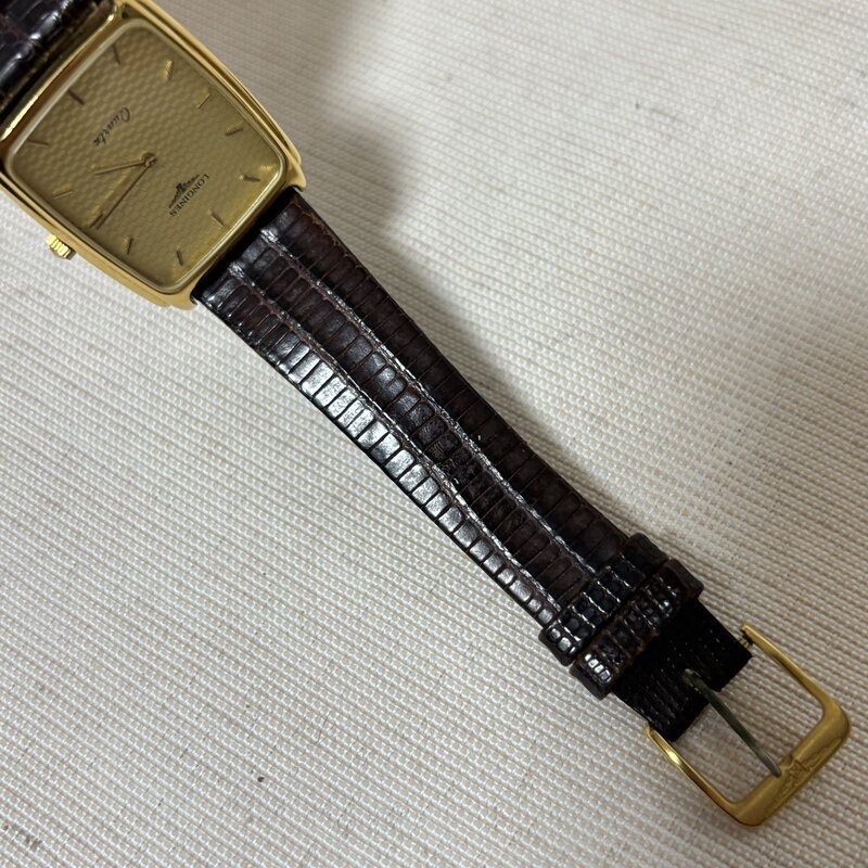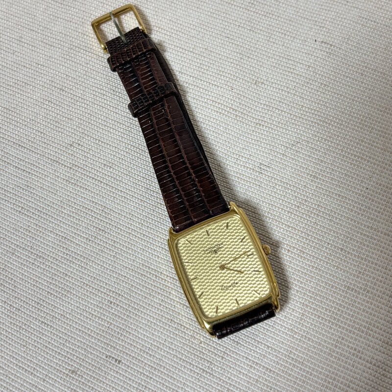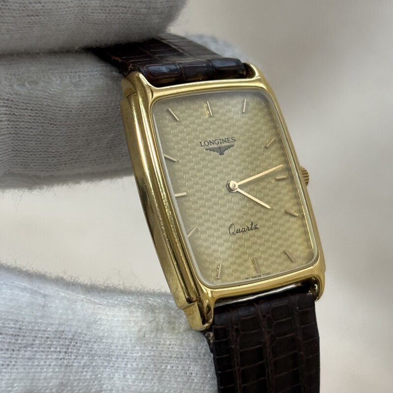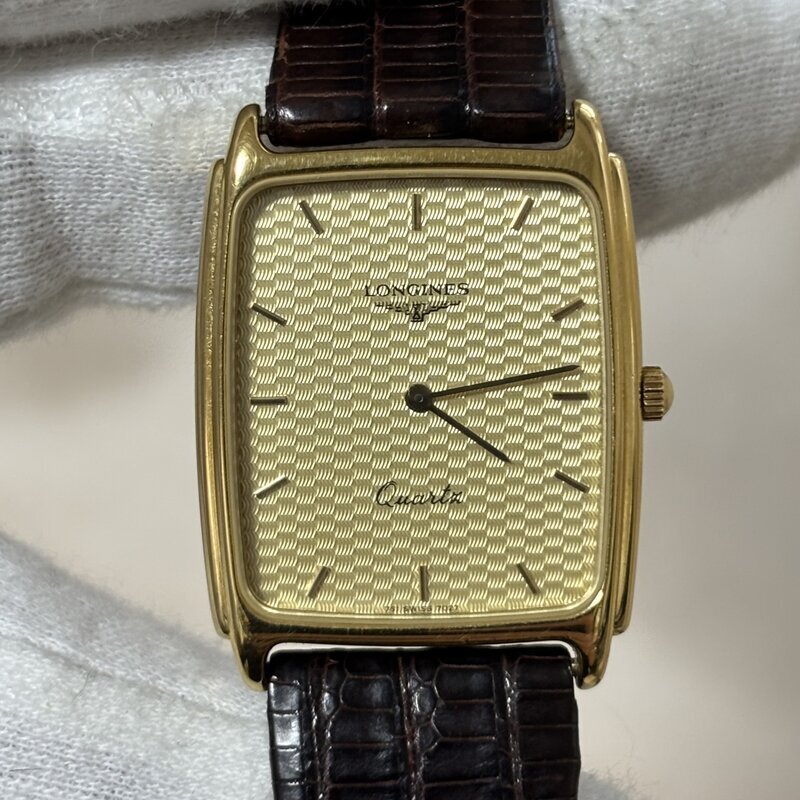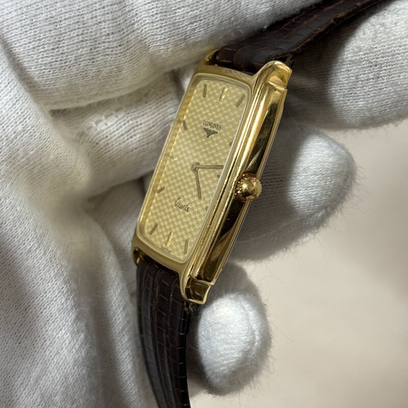 電池交換済 LONGINES ロンジン メンズクオーツ腕時計 スクエア レクタンギュラー ギョーシェ GOLD 純正尾錠ベルト L761 7027 IW511BT33LNG