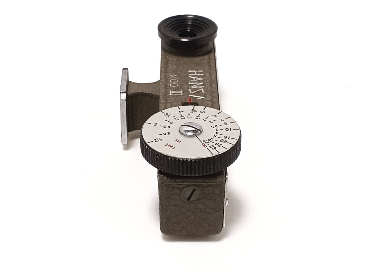 ●このたび HANZA MOD III 距離計を出品いたします。 ※説明文、注意事項を最後まで熟読頂きご落札ご検討お願い致します。 ●希少なハンザ社製の距離計のようで、ネットで調べてみましたが資料となる サイトが見つかりませんでした 当商品に詳しくないため、素人の簡単な動作確認、商品説明 現状ジャンク品での出品となります 以上のことから3Nをお約束できる方の御落札お待ちしております。 ●本体、大変古い商品となりますが経年の割には目立つ傷等もなく比較的綺麗な商品です。 (写真を掲載しましたのでご確認、ご判断願います) ●経年によるクモリがありますが問題なく視認できでおります。 ブライトフレーム、若干の縦ずれがありますが距離計盤ノブを回すと距離に応じ左右二重像が 画合焦します。(厳密な距離測定か精度は不明です) 距離計盤ノブも適度なトルク感でスムーズに回転します。 ■出品商品 写真のHANZA MOD. III 距離計 のみとなります。 | |