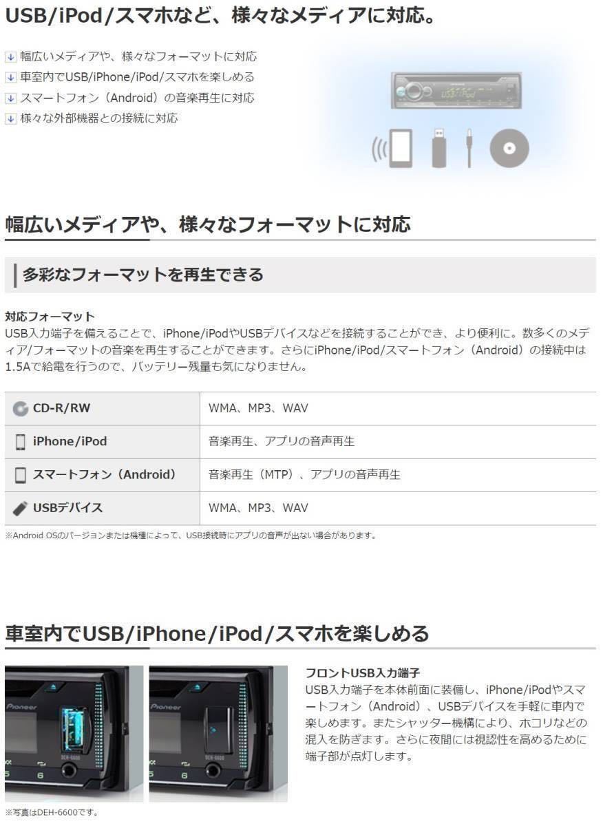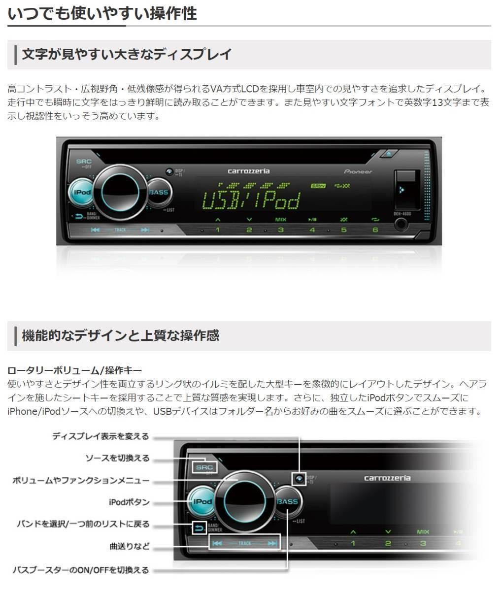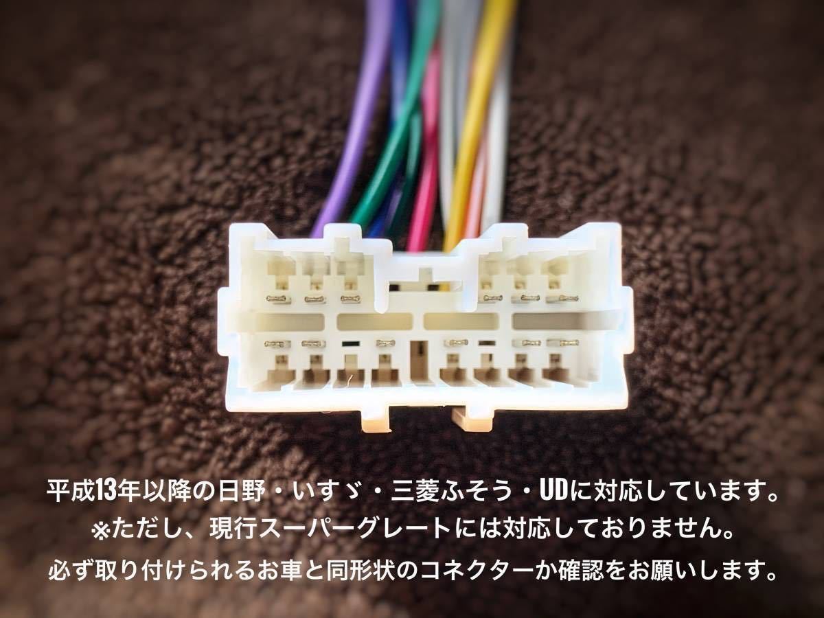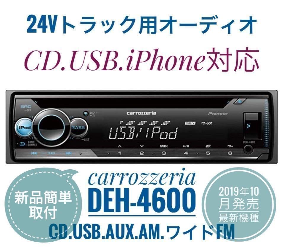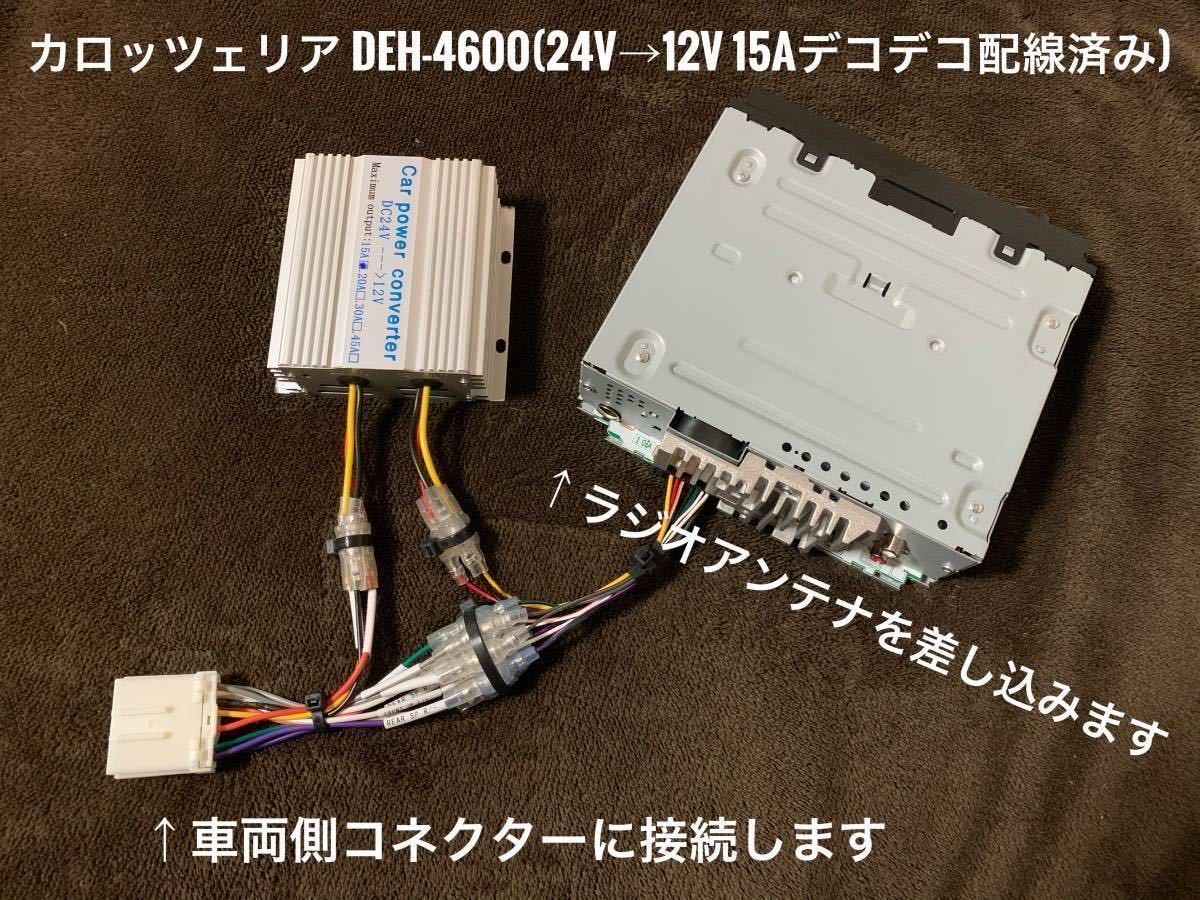 | 新品簡単取付!24Vオーディオ CDデッキ カロッツェリア CD/USB/AM FMラジオ/AUX デコデコ取付済 2019年10月発売最新機種です! カロッツェリアDEH-4600+15Aデコデコ(DC/DCコンバータ)+14ピンハーネス すべて新品を使用しています。 こちらの商品は、24Vのトラックやダンブでも簡単にオーディオを取り付け出来るように、デコデコとトラック用の14ピンハーネスを接続しています。 面倒な配線作業は不要です。純正のラジオかCDデッキを取り外し、背面のコネクターとラジオアンテナ線をこちらへ差し込むだけです。 平成13年以降の24V車の日野・いすゞ・三菱ふそう・UD(日産UD)に対応しています。 ※なお、新型17スーパーグレートには対応しておりません。 ※新車でBluetoothが付いてるトラックはコネクターの形状が異なるため、対応しておりません。 国産車4社共に共通ですが、一部のお車でコネクター形状が違う場合がありますので、ご購入前にコネクターの形状の確認をお願いします。 純正2スピーカー車・4スピーカー車どちらにも対応しています。 動作は乗用車と同様、キーACCにて動作、キーOFFで電源が切れます。(バックアップ電源対応で、時計やメモリーも乗用車と同じく正常に動作します。) また、イルミネーション機能有りで、ライトスイッチ連動でディスプレイの減光が出来ます。 -------------------------------------------------------- ・使用している部品は全て新品を使用しています。 ・デコデコはテスターにて12V前後に出力されているか確認しています。 ・24Vの電源で、1つ1つ正常に動作するか確認した上で出品しています。(実際にCDとUSBメモリで再生確認・全てのスピーカーから音が出るか確認・20分ほど再生して動作確認) ※必ずコネクターの形状をご確認の上、ご購入下さい。 お取付は自己責任にてお願い致します。 取付の際に生じた破損や故障・発煙・火災等の損害には対応出来ません。 -------------------------------------------------------- 以下、カロッツェリア DEH-4600の詳細です。 CD、ラジオ、前面にUSBとAUX(外部入力・ミニジャック端子)を装備しているため、USBに入れた大量の音楽を聴いたり、スマホやタブレット、iPhoneやiPodと接続して音楽などを楽しむことが出来ます。 ワイドFMにも対応しております。 また、操作キーとディスプレイの色を12色から選んだり、最大22万色の中から自分好みの色にセッティングすることが出来ます。 ※メーカーHP https://jpn.pioneer/ja/carrozzeria/car_av/av_mainunit/deh-4600/ ご不明な点がございましたら、お気軽にご質問くださいませ。 | ||