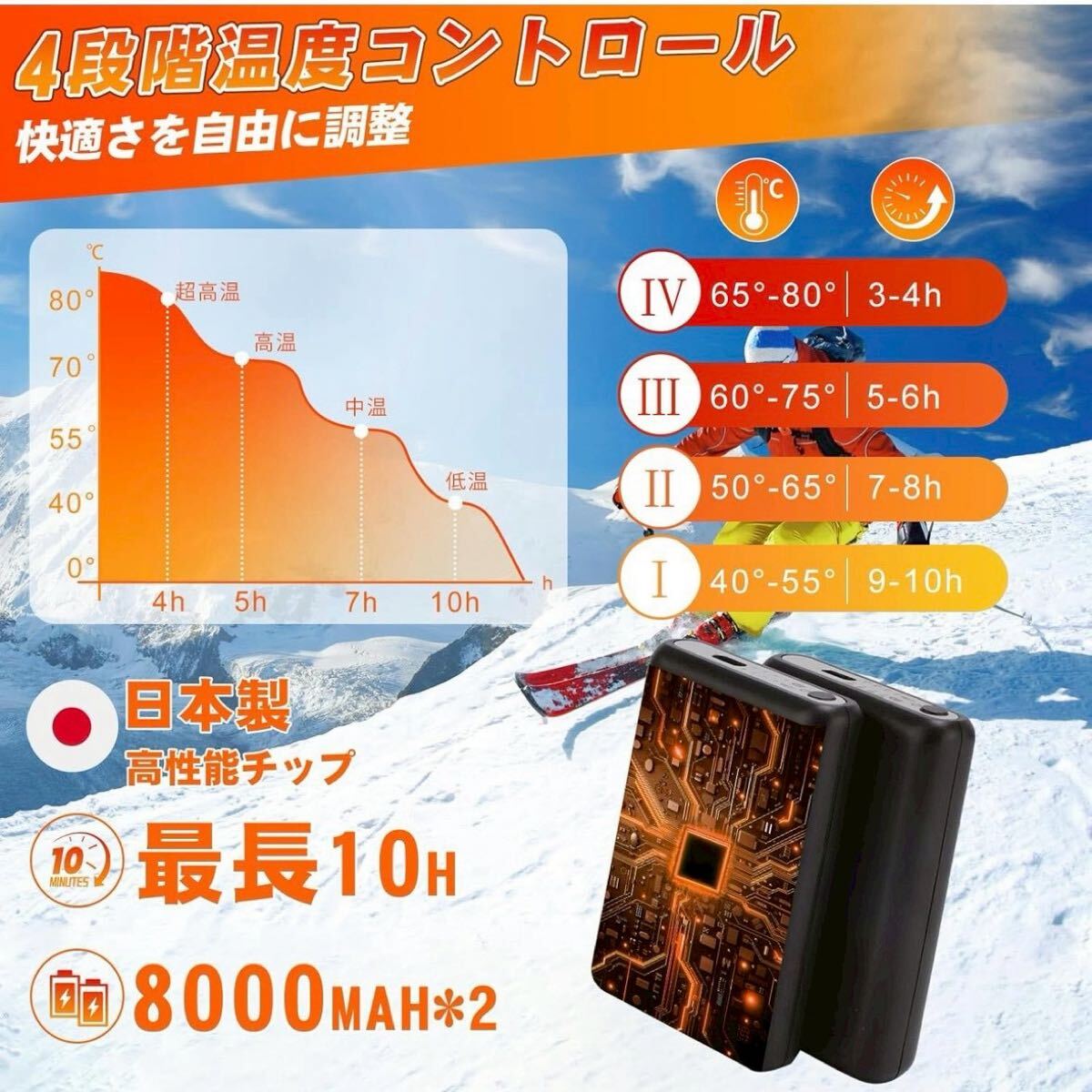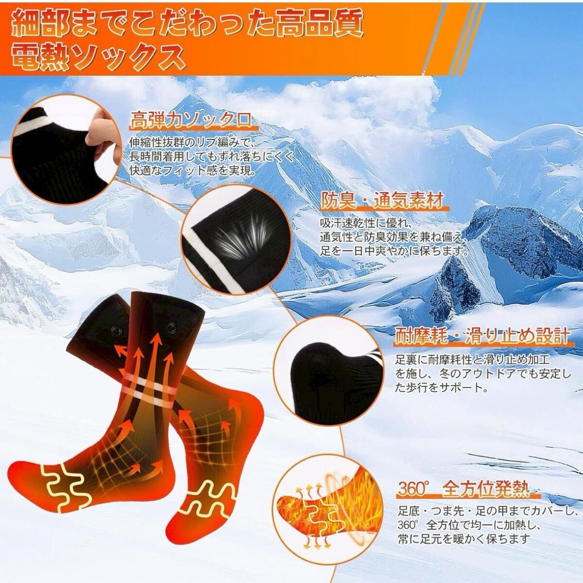 【 360°全方位加熱&4段階温度調節】 2025年最新アップグレード版の電熱ソックスは、つま先+足裏+足の甲を360°全方位で均一に加熱します。ワンタッチのボタン操作で温度を簡単に調整でき、40〜80℃の幅広い温度範囲に対応し、低温・中温・高温・超高温の4段階モードを自由に切り替えられます。短時間で素早く加熱が始まり、寒い冬の通勤・屋外作業・スポーツ時でも常に暖かさをキープできる電熱くつ下であり、快適な防寒対策を実現するヒーター靴下です。| 出价者 | 信用 | 价格 | 时间 |