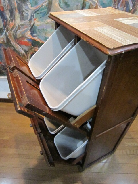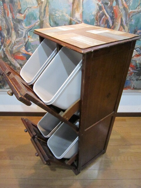 レトロ アンティーク 骨董 お洒落 天然木 分別ゴミ箱 木製 ダストボックス 扉付 ポリ容器4個付 ★606| 出价者 | 信用 | 价格 | 时间 |