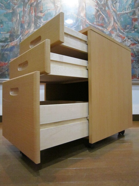 使用感極少 リモートワーク 高級 天然木 脇机 袖机 サイドデスク 木製サイドテーブル キャビネット キャスター付  ★270