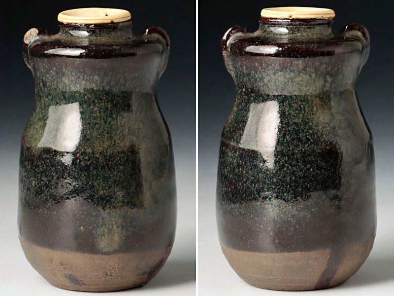 | 【古美味】名品!時代物!薩摩耳付茶入 時代箱 仕覆 二重箱 茶道具 保証品 |