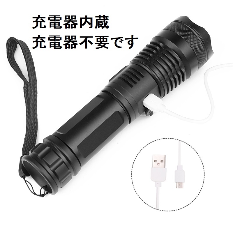 ・ハンディライト本体に充電機能内蔵しています。付属のusb充電ケーブルを本体にさして充電可能