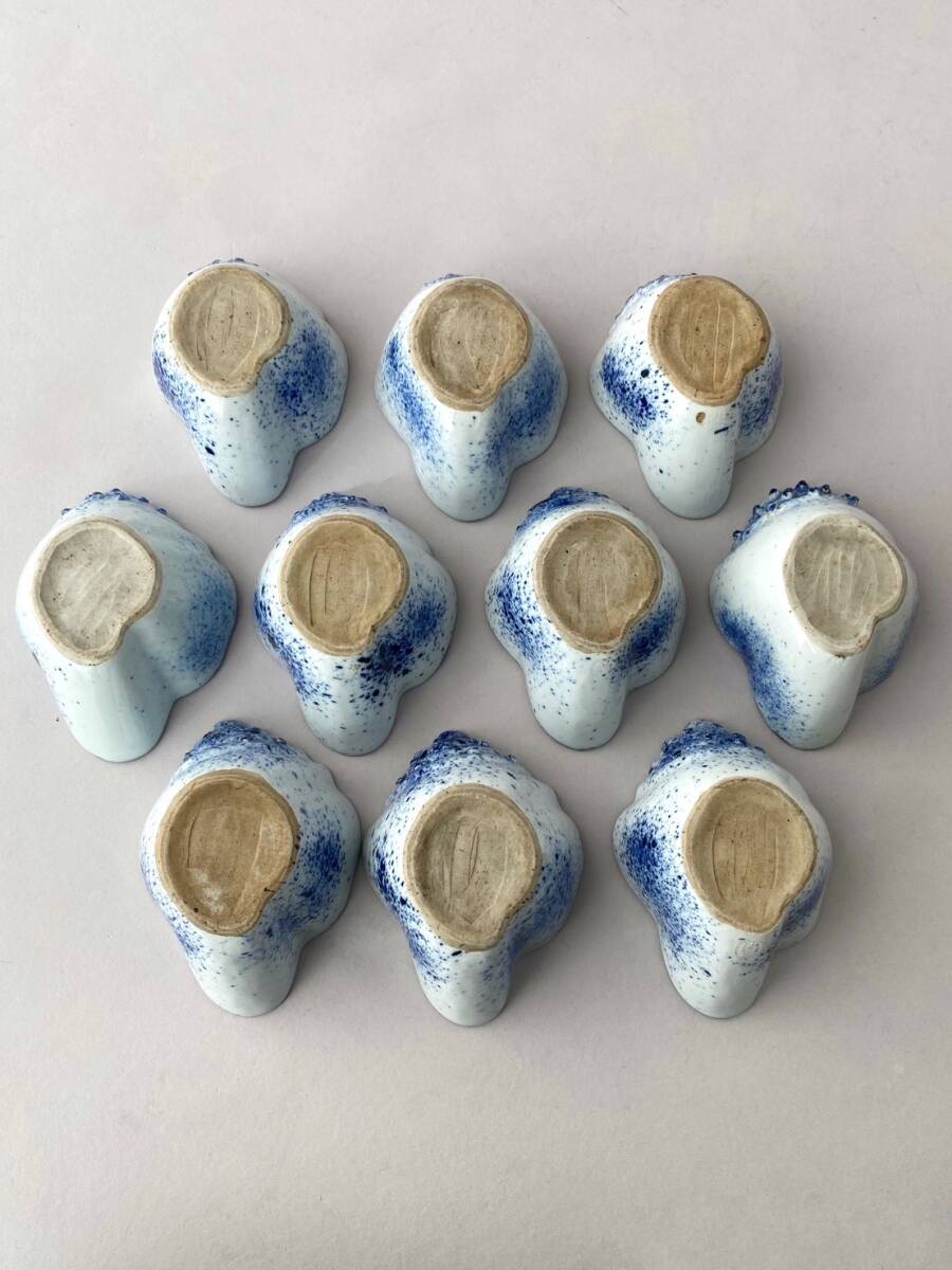 この度は数あるオークションからご覧いただき、ありがとうございます。 希少 永楽善五郎 「古染付写 貝形向付」 10客揃 共箱付き 在銘 在印 吹墨 染付 です。 ■商品説明■ 永楽善五郎作、吹墨 染付 貝型 向付です。 希少な10客揃いとなり、吹墨の発色も良く、古格ある良いお品物ではないでしょうか。 ■サイズ(約)■ 横幅13.5㎝ 奥行10㎝ 高さ5.5㎝(※一客のみ計測、個体差アリ) ■商品状態■ こちらは古い物となり、商品状態・時代感を損なわぬ様、乾拭きなどの簡易清掃にて出品しております。 とても古い物となります為、古格を損なわぬように全部の汚れは落としきっておりません。 本体、大きく使用を損なうものではないかと思われますが、時代なりの小ホツ、ノミホツ、フリモノ、窯キズなどが見受けられます。(本文、商品画像をご参照ください。) 共箱、蓋の留め具の欠損など、時代なりのイタミがございます。 ほか時代・保管・使用に伴うスレ、小傷、落としきれない汚れ等あるものとご承知おきください。 詳細な状態につきましては画像にてご判断頂きご入札をお願い致します。 ※下記、発送詳細・支払い方法・その他、注意事項をご一読ください。 |