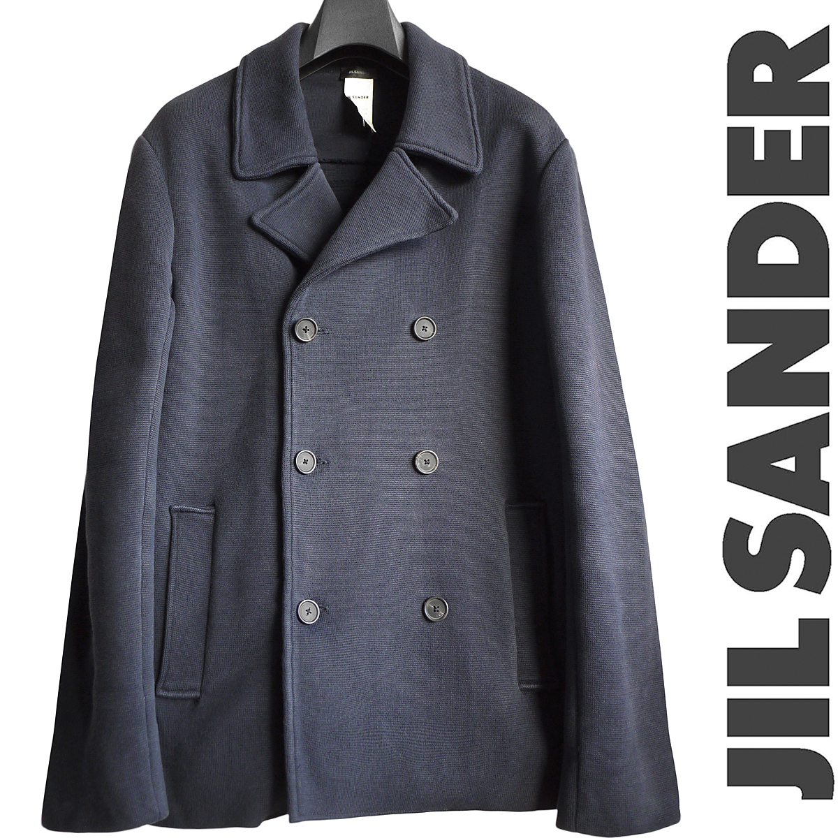ジルサンダーのウールメルトンダブルブレステッドコートでございます。無駄な装飾を排したクリーンなデザイン、古典的なスタイルのダブルブレストをモダンに昇華したモデルです。