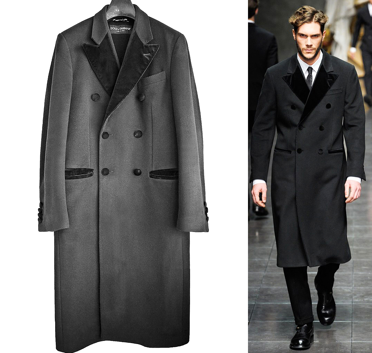 ドルチェ&ガッバーナのカシミアブレンドメルトンダブルチェスターコートでございます。ランウェイ画像同モデルでございます。ドルチェ&ガッバーナの最高級ラインの証であるブラックタグの最上級ラインのモデルでございます。