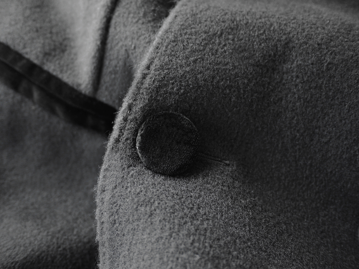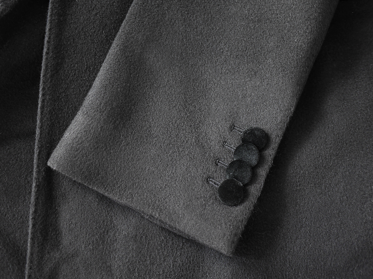 大変滑らかな質感のカシミア混ウールを採用し、保温性、着心地とともに抜群の最高級素材を使用した贅沢な逸品です。ラペルやポケット部分はベルベットの切り替えしとなり、品格溢れるモードなスタイリングを演出いたします。近年トレンドの裏側もウールを張り合わせたダブルフェイス仕様となっており、着心地も素晴らしく機能性に優れたコートに仕上げられております。
