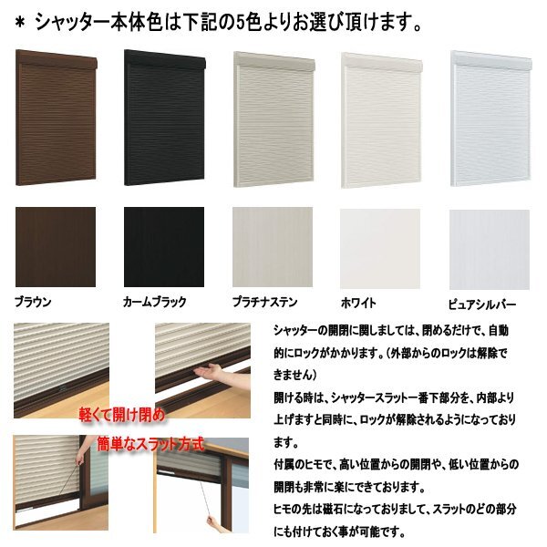 | 商品状態 | * メーカーからの梱包状態にて出荷致します。 * 梱包内容 (シャッター本体・シャッターボックス付枠・シャッターレール)壁付ビス隠し枠カバー材 * 商品の組立、及び取付はお客様にてお願い致します。 * 取付方法やサイズオーダー等のご質問はお気軽にお問い合わせ下さい。 |