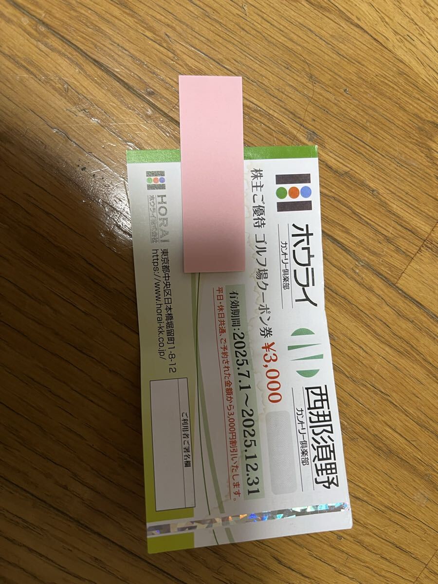 ホウライ株主会社の株価優待で、本券1枚でホウライカントリー倶楽部、西那須野カントリー倶楽部でのプレー代から3,000円割引となります。| 出价者 | 信用 | 价格 | 时间 |