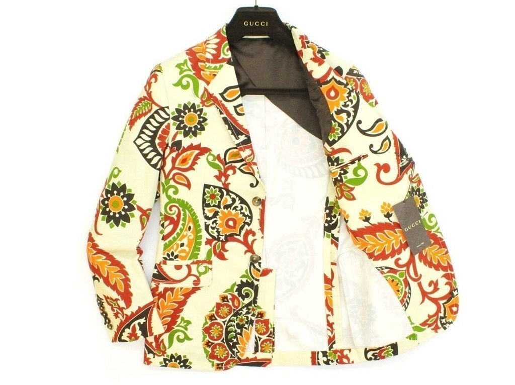 45万新品◆50=M~L◆GUCCI グッチ ライトベージュ×赤茶系ピーコック柄ジャケット