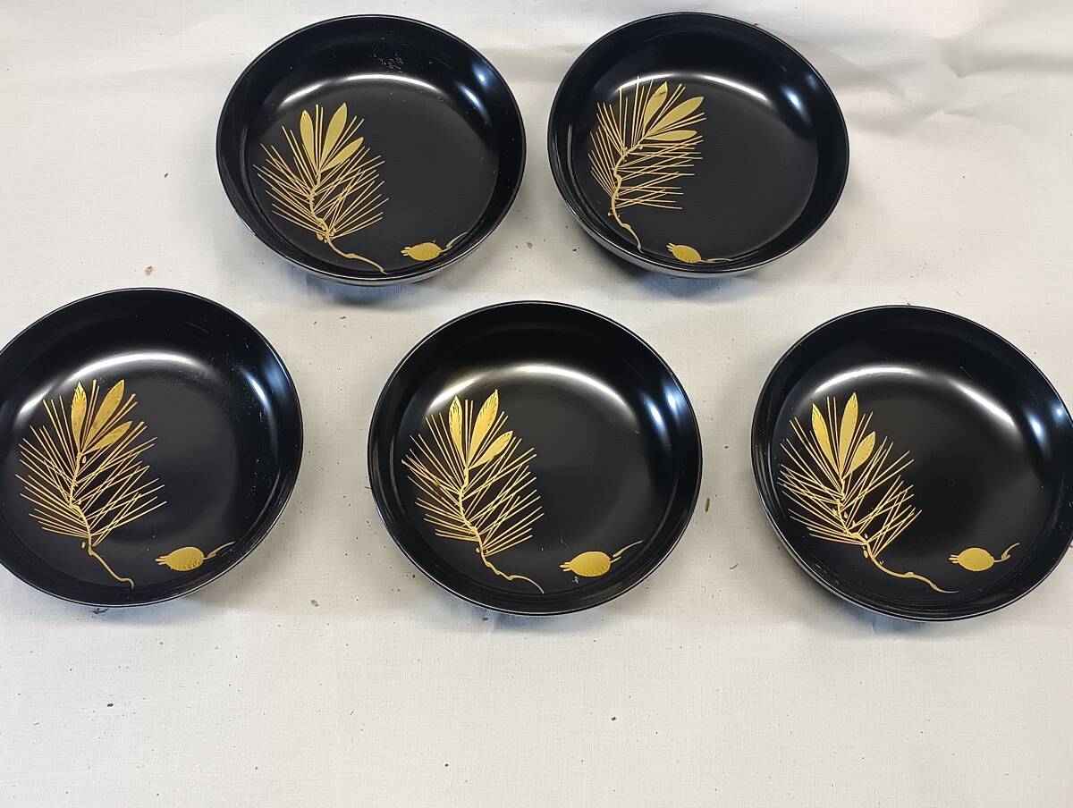 出品物 輪島塗 小皿 五客 金蒔絵 直径 11,5cm 高さ 3,2cm