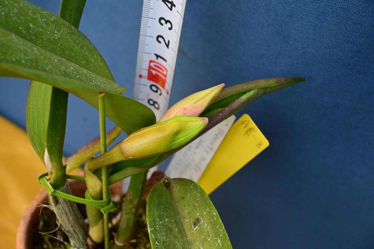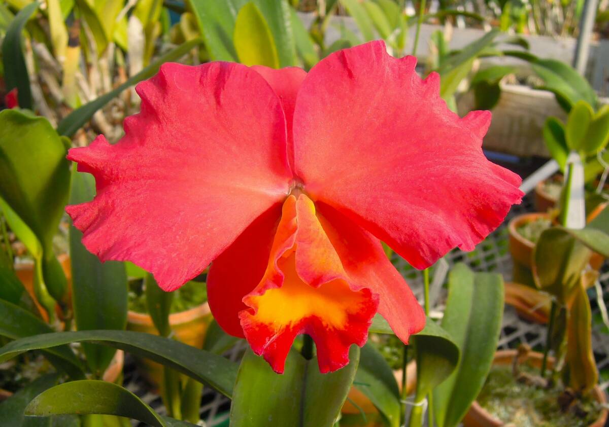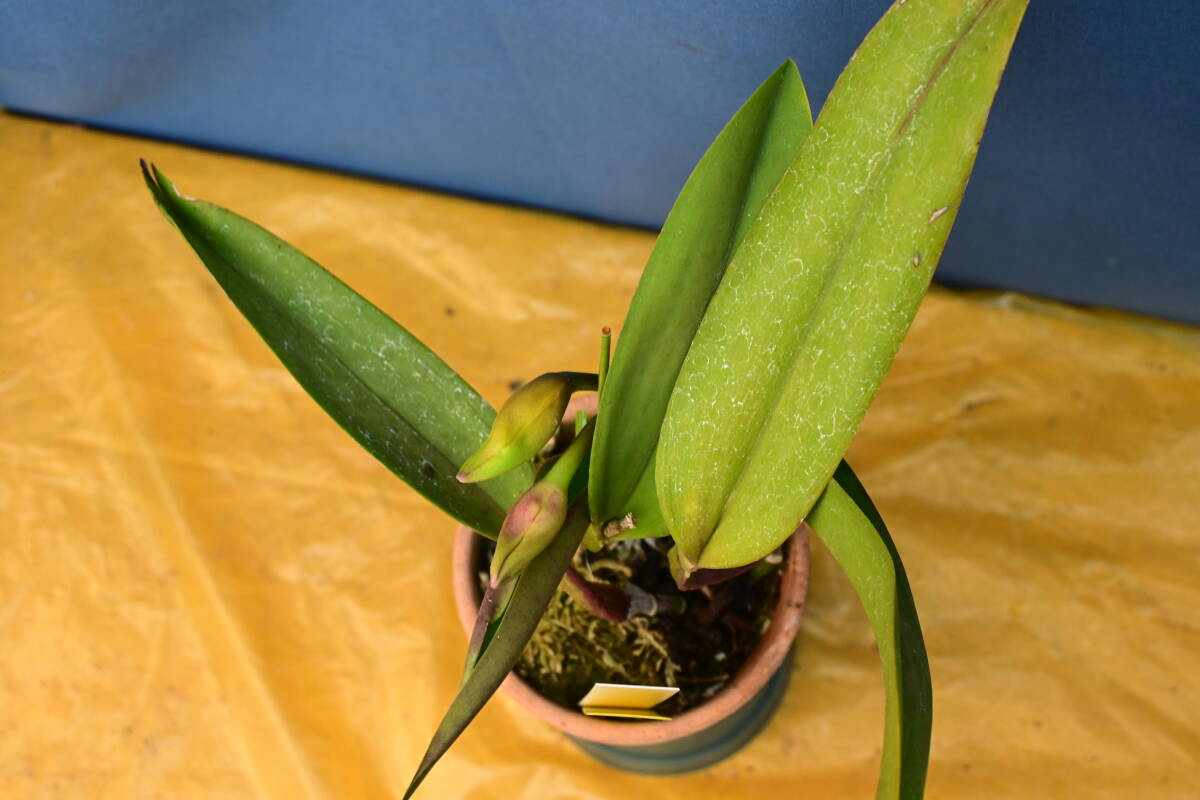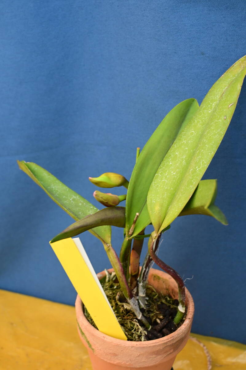 | (C. coccnea x C. Horace 'Maxima' AM/AOS) 朱赤色小輪原種に大輪整形のホ-レ-スとの特殊交配 花径8-11cmのミデイ 5バルブ 2輪蕾付 3号鉢 60サイズ |