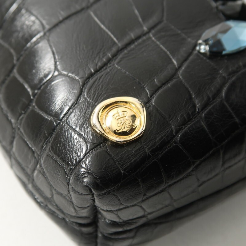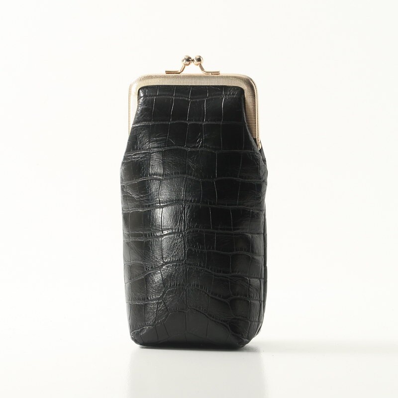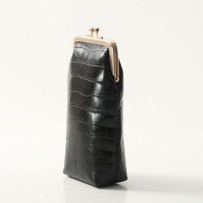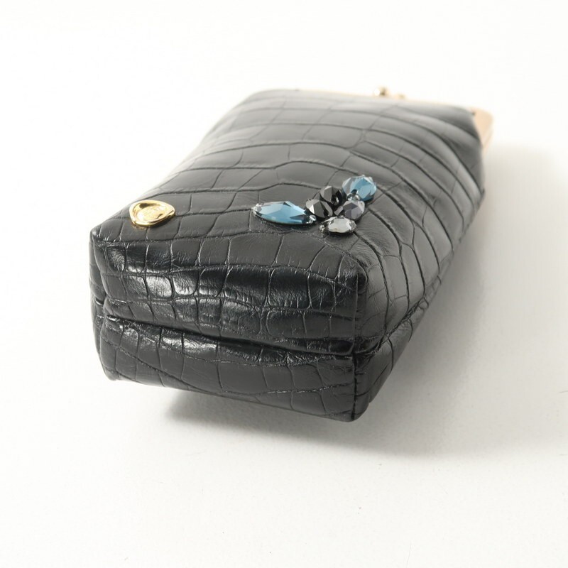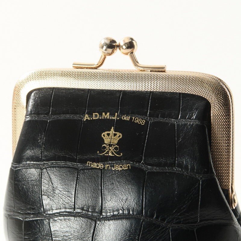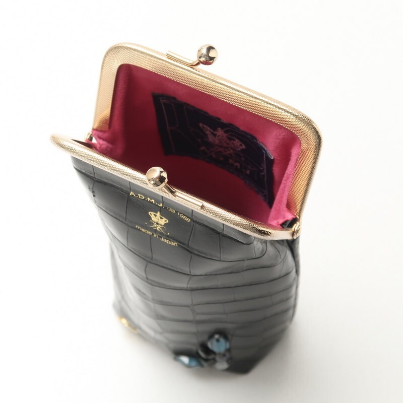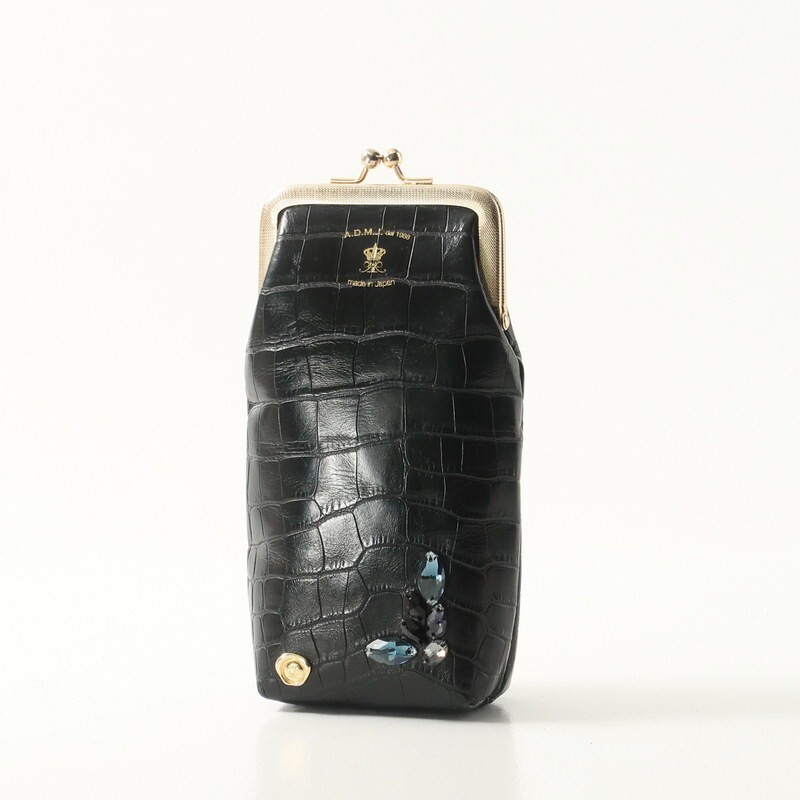 | GS5863〇A.D.M.J.エーディーエムジェイ*クロコ型押しレザー*ビジュー装飾*がま口 ケース*ポーチ*ブラック系 | |||