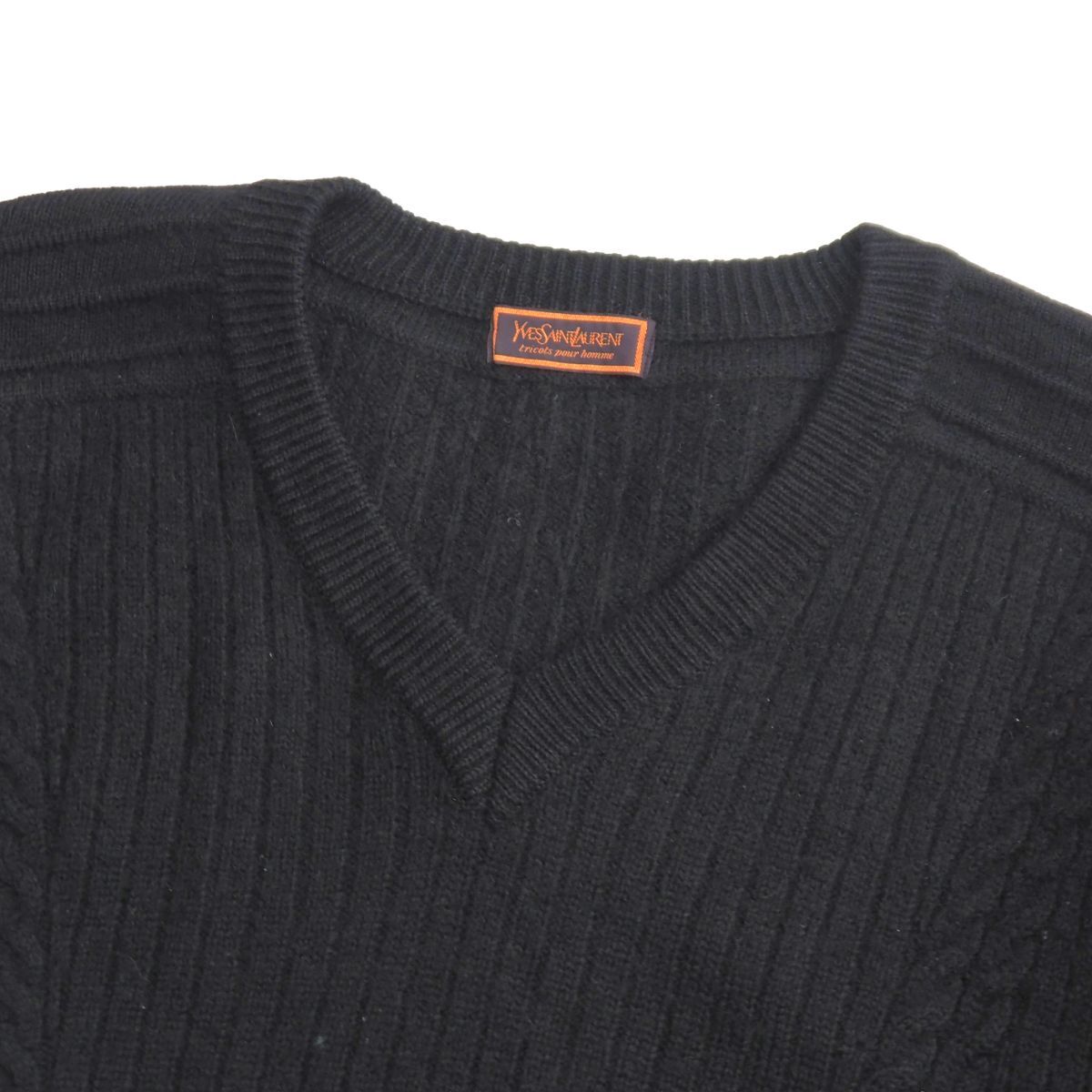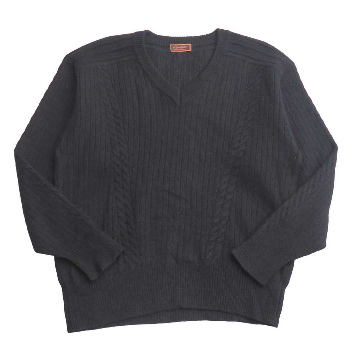 | TI6355◎イヴサンローラン YSL ウールアルパカ ケーブル編み ミドルゲージ ニット セーター ブラック 黒 メンズL | |||