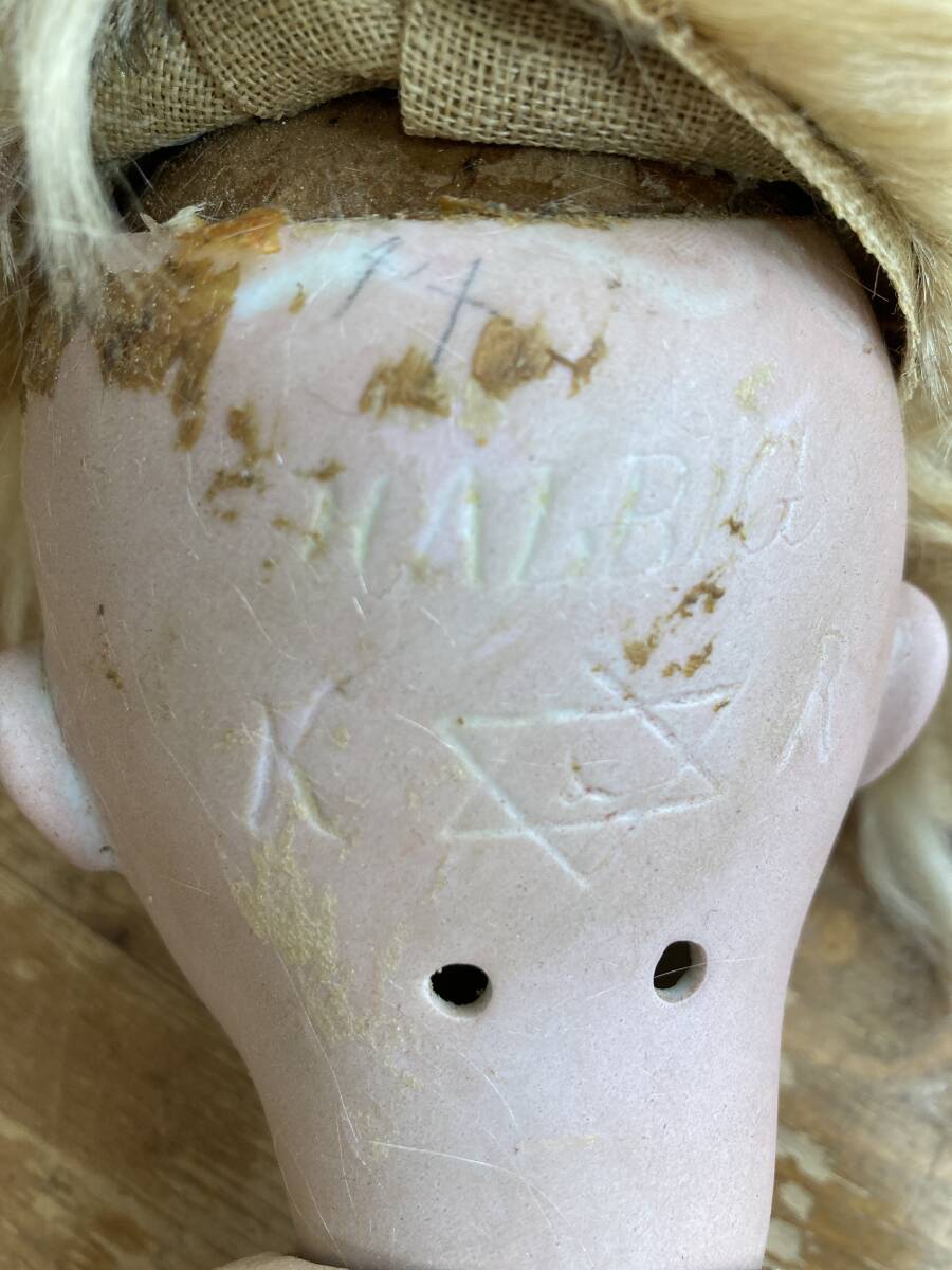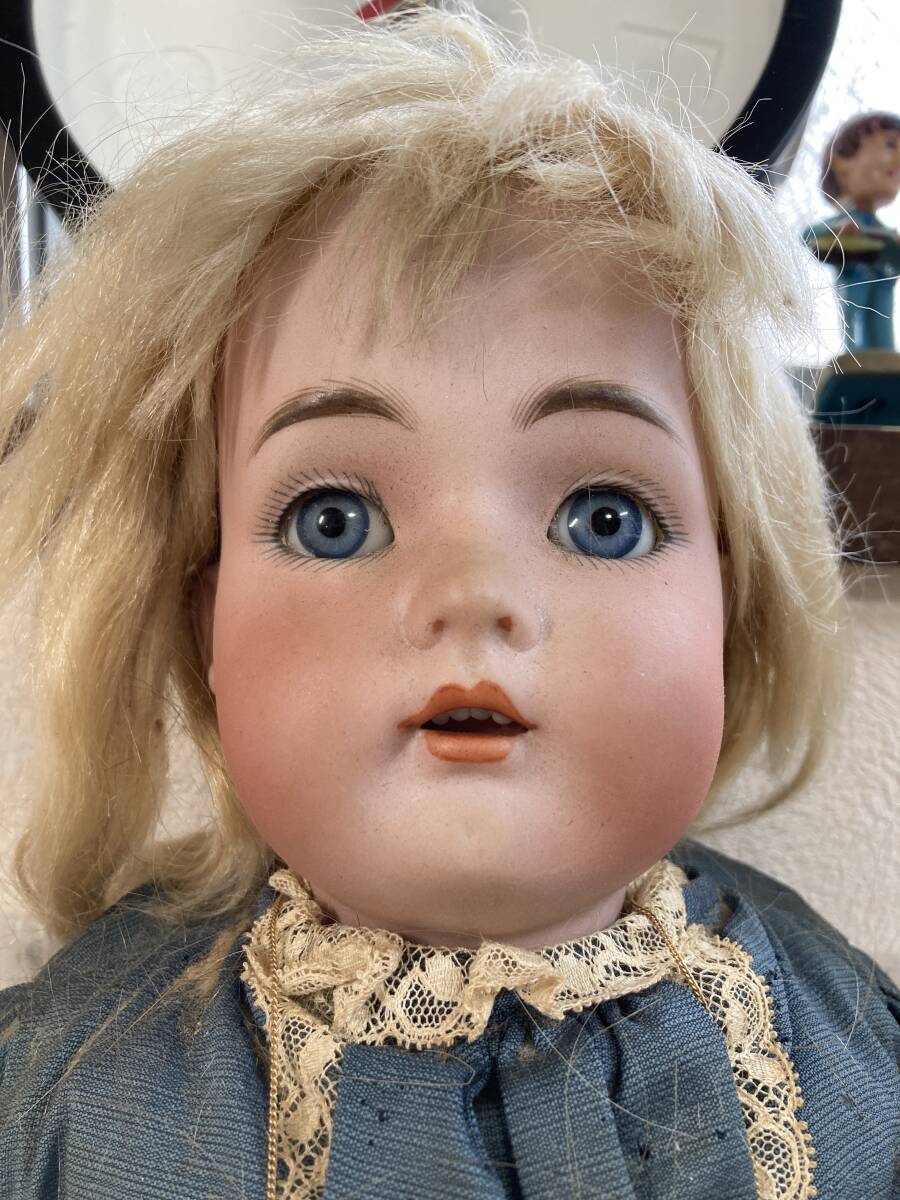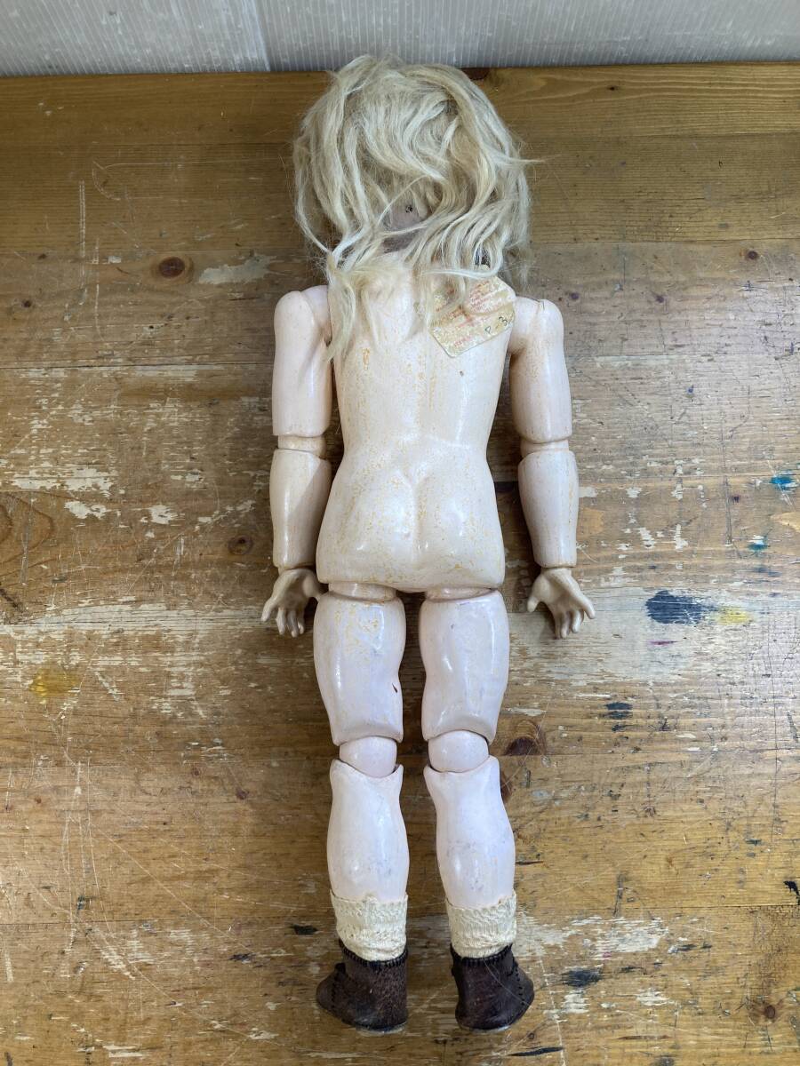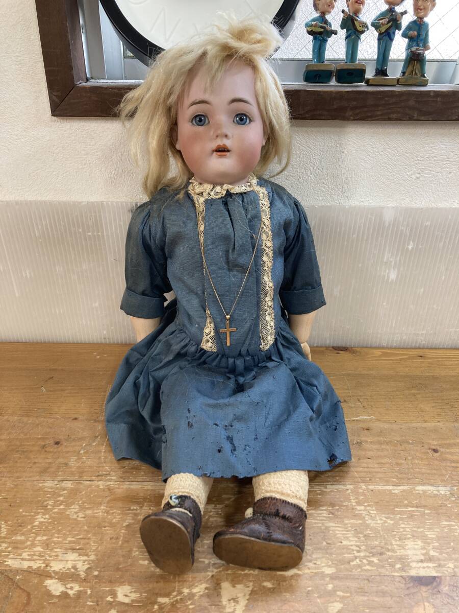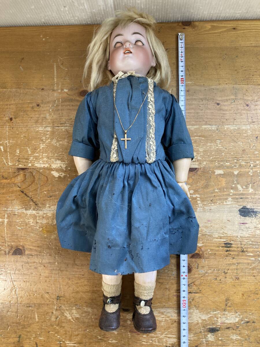 アンティークドール 112530y 約50cm ビスクドール? ガラス 目 スリーピング アイ オープンマウス ヴィンテージ 骨董 人形