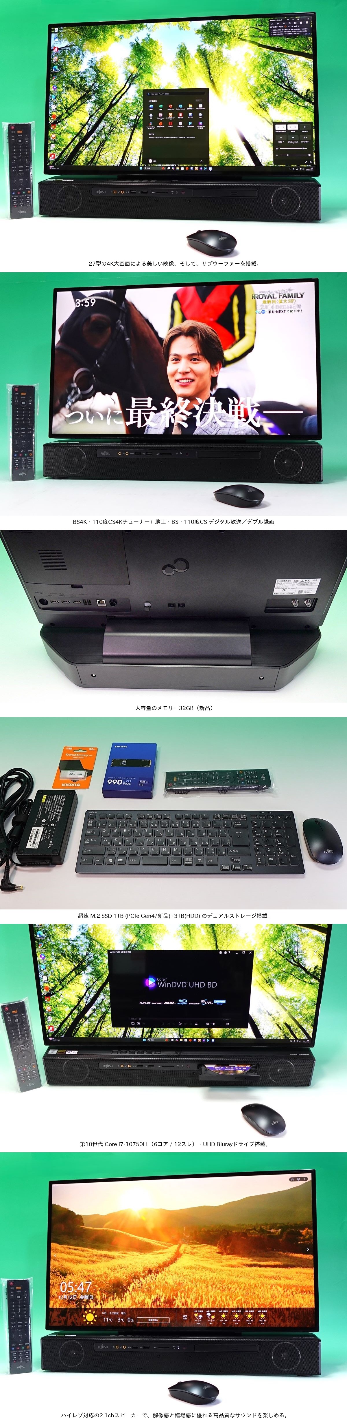 ・ Ultra HD Blurayドライブ搭載。4K大画面で高画質な4K映画、Youtube動画などの視聴も楽しめます。