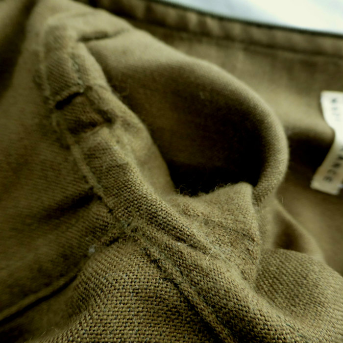 | 僅かなシワ感や脇に毛羽や毛玉、身頃に数か所小さな糸飛びが見受けられますが、まだまだお使いいただけるお品です。 |