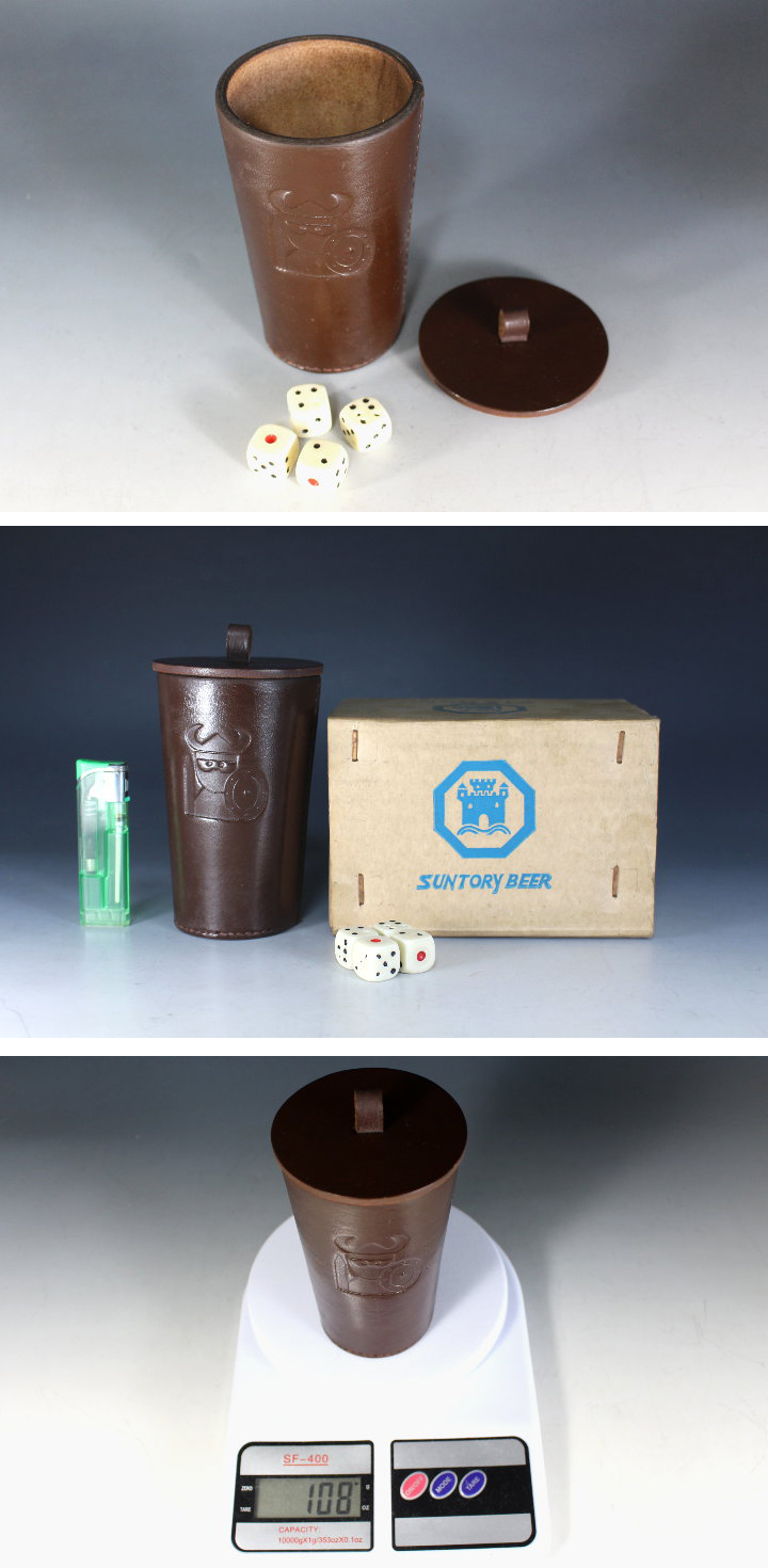 サイズ:高12.6cm サントリービール(SUNTORY BEER)のオリジナル 革製ダイスカップとサイコロセット 騎士です。 見かけることの少ないノベルティグッズです。 キャンペーンで提供されていた非売品でしょうか? 詳しい事は分かりません。 小さな箱に入っています。(共箱) 新品ではありません。 サイコロは元のサイコロがどうか分かりません。 写真をご覧の上ご入札宜しくお願い致します。 | |