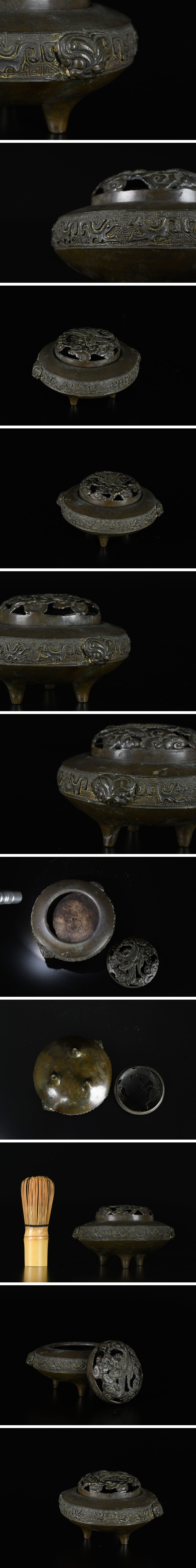 | 銅製 盛上獅子鳳凰饕餮紋三脚香炉 重量 約575g / 香炉 | ||||||||||||||||||||