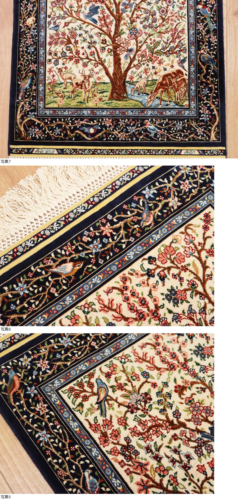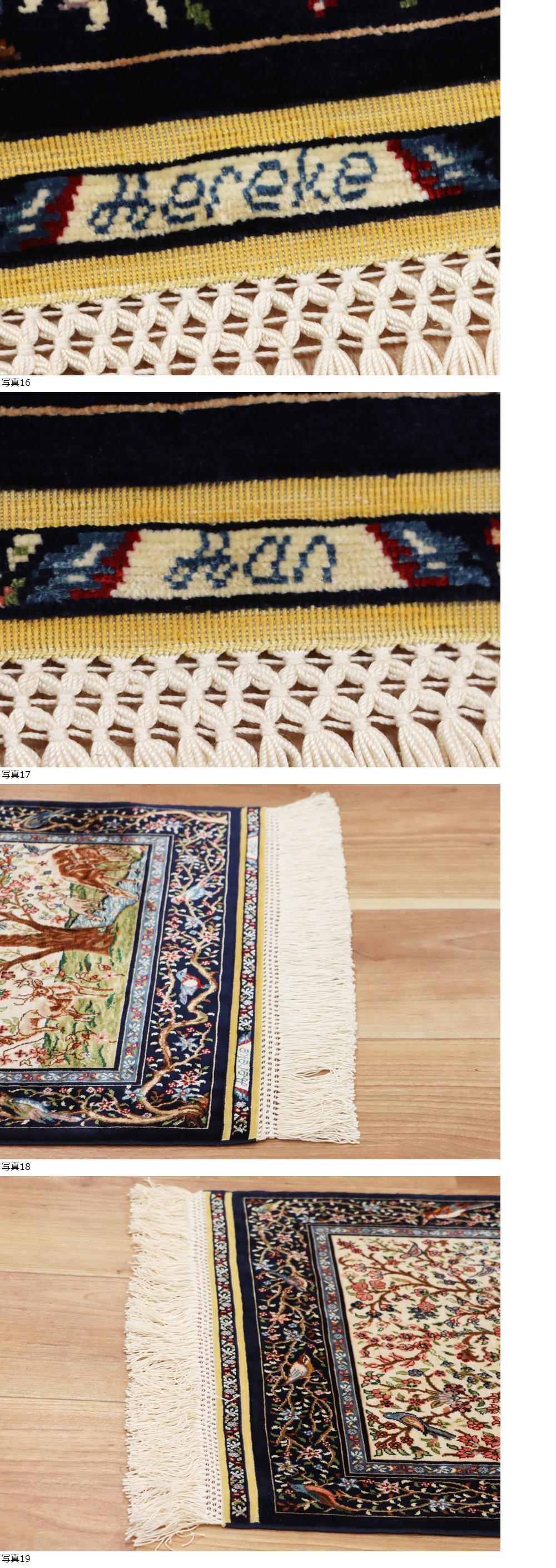 サイズ(約) 68×40㎝(フリンジ含まず)/厚み 3㎜ 付属品 - 超最高峰最上級傑作品 購入価格250万円以上 ヘレケ産 総シルク絨毯 手織り彩糸使用 68×40㎝ 169万ノット以上 生命の樹王宮絨毯 特級品 本物保証 250万円級の超最高級、シルク100%、品質保証品 169万ノット トルコヘレケ、名工房厳選作品!ペルシャ絨毯 現在ヘレケの絨毯は、織り手が少なくなってきており、大変希少な絨毯となってきております。 こちらの絨毯は人気の生命の樹文様、動物も描かれており、HEREKE特有の洗練された素晴らしい技術、特選作品でございます! 滅多にお目にかかることのできない超細密手織りの169万ノットの大変素晴らしいお品で、大変細かな花が織り込まれています。 工房マークございます。 状態、未使用に近い大変きれいな状態となります。 頑丈一点物となりますので、画像参考の上、入札の方お願いいたします! 大事にしていただける方の入札お待ちしております! 一度人手に渡ったものがほとんどの為、生活臭や保管臭等、臭いの付着があるものもございます。 臭いに関しては感じ方に個人差があるため、臭いが強いものに関しては説明欄に記載いたします。以上をご理解の上ご入札をお願いいたします。 絨毯に関しましては基本的にキャンセルはお受けできかねます。十分ご検討いただき、ご納得いただいた上でのご入札をお願いいたします。 |