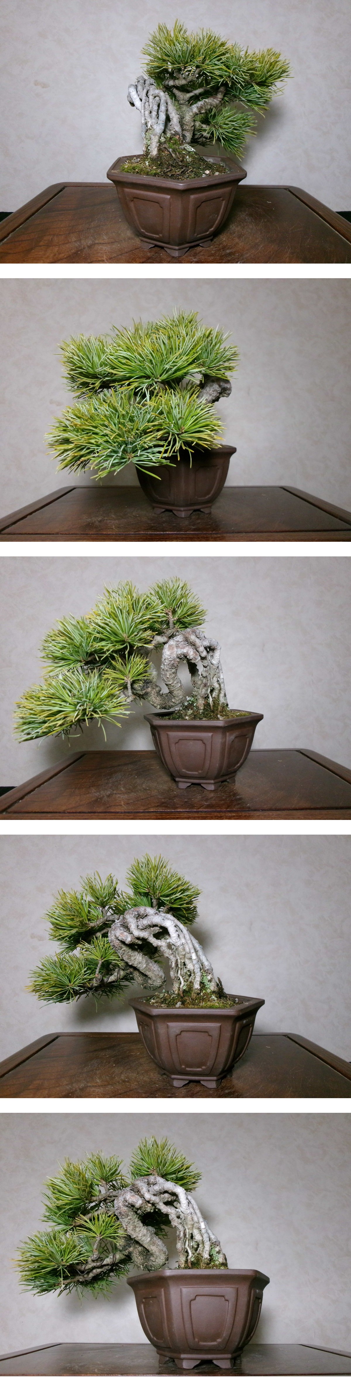 | 希少 古木感上々 葉性良し 展示にも 那須五葉松 風情ある根上がりの懸崖仕立て 持込の小品盆栽 樹高18センチ(地際から11センチ) | |||||||||||