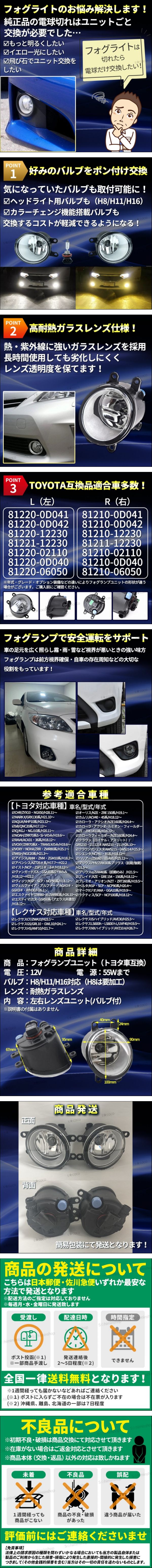 | フォグランプ ユニット トヨタ TOYOTA 汎用 互換 H8 H11 H16 耐熱 強化レンズ プリウス アルファード ヴォクシー ノア アクア 左右セット② | |||