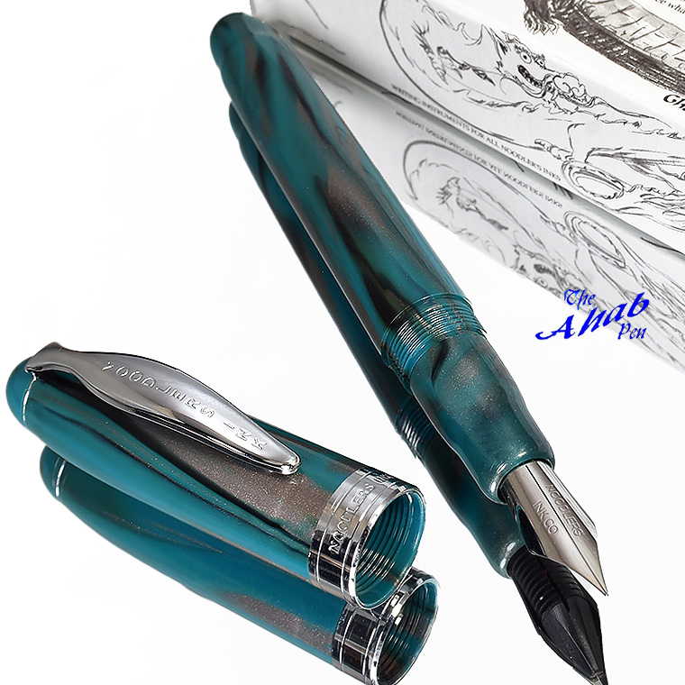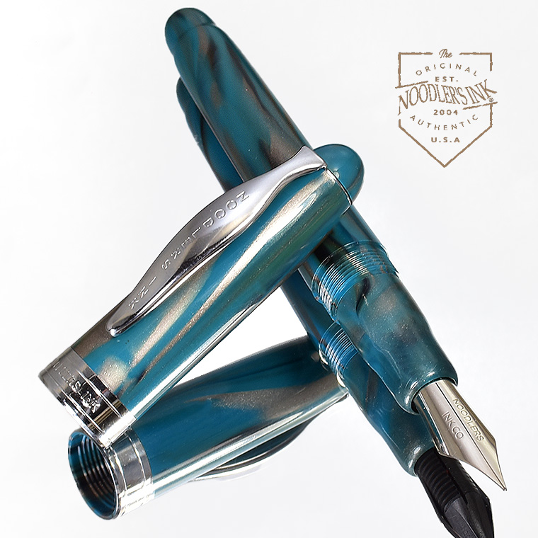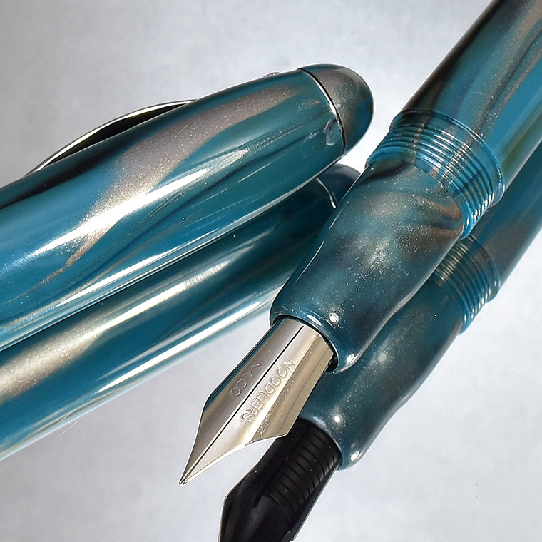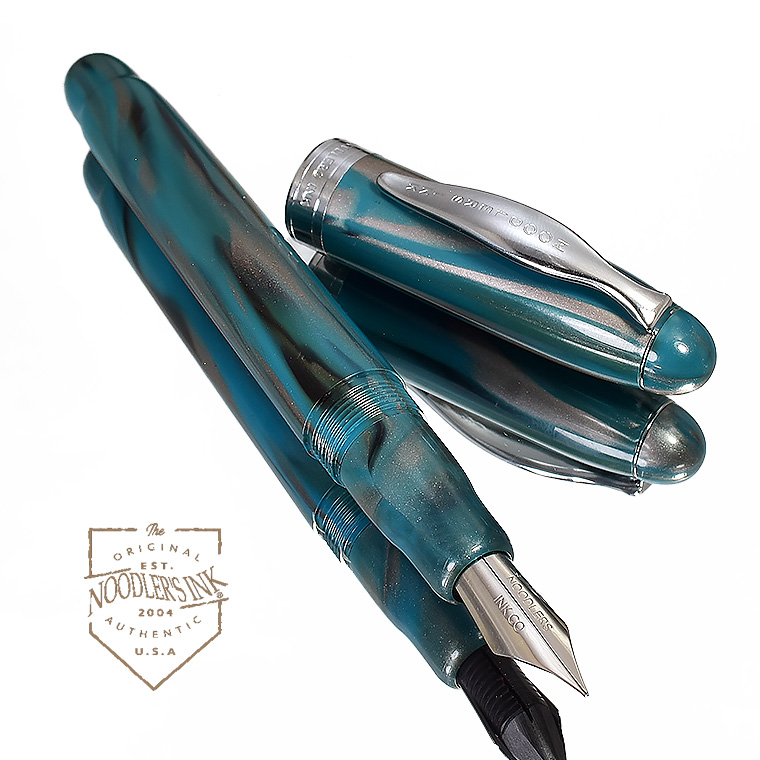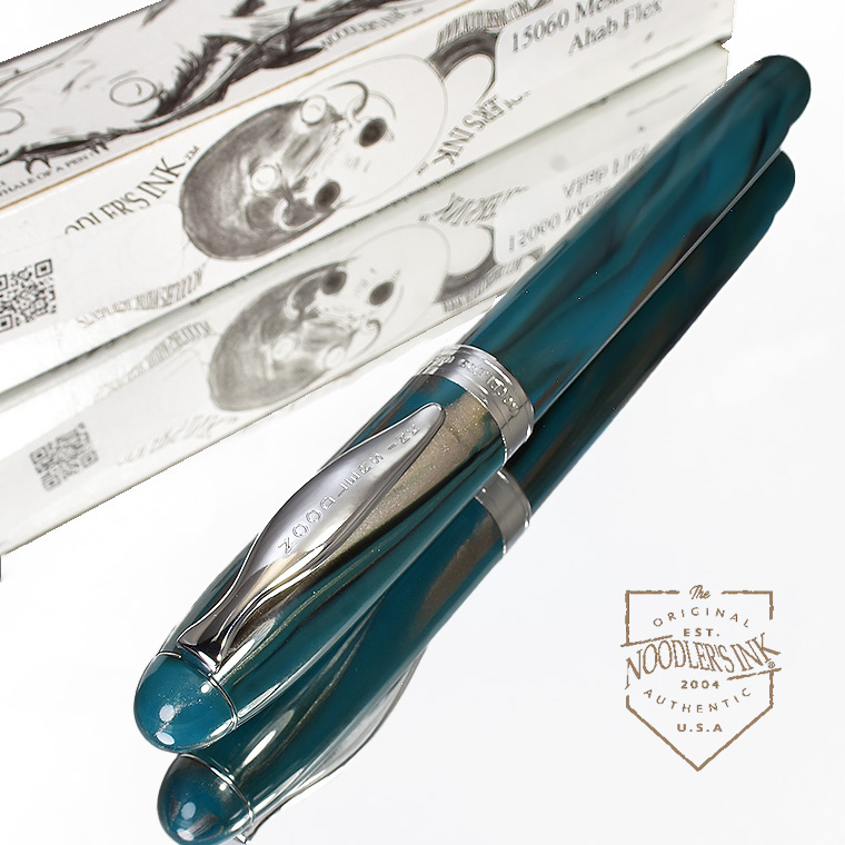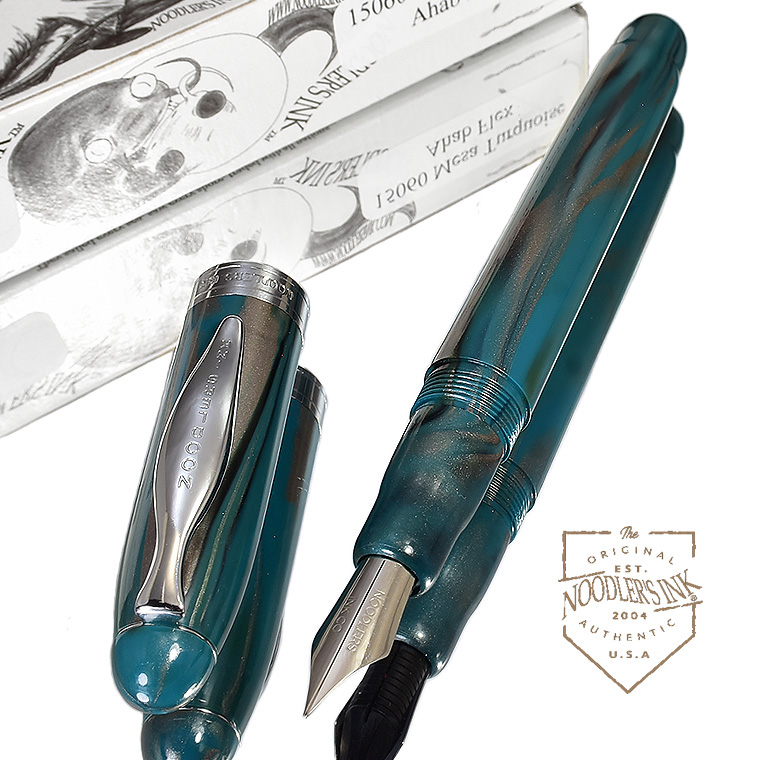 「フレックスニブ」シリーズ 万年筆 「Ahab」シリーズ ”15060 Mesa Turquoise” 「Ahab」シリーズのライナップ商品 文字幅を自由自在に書き分けられるフレックスニブ万年筆 今回は”各カラー限定1本のみでの入荷”となりますのでお見逃しなく! ![]() 万年筆の中でも特に表情豊かなラインを引くことのできる特殊なペン先を持った万年筆を ご紹介いたします。 今回、私たちhunnyhuntjpがお薦めするのは「フレックスニブ」システムを持つ万年筆です。 この万年筆は、私たち同様に柔軟性の高いペン先に魅了されたアメリカ合衆国テキサス州の 会社「NOODLERS INK」社が造っている Ahabシリーズ「Mesa Turquoise」です。 彼らのこだわりは「ニブ=Nib」はもちろんのこと、 そのニブを支える独自の「ペン芯=Feed」にもあり、独特な柔軟性を備えたこの会社の オリジナルで、 「ニブ」と「ペン芯」を合わせた「フレックスニブシステム」を 考案制作したところに面白さがあります。 私は自社ブランドのNIBを開発していく過程で、世界の様々な万年筆が作られてきた歴史を研究し、 その中でオリジナルとして開発されてきた様々なNIBを入手しテストしてきました。 その中で、特に注目しているのが、特別な「しなり」を持ったNIBたちなのです。 そこで、FLEX/フレックスNIBと呼ばれる特徴的な書き味を持ったニブに注目したのです。 ご存知の方もおられるでしょが、「フレックスニブ」は新しいものではなりません。 既に欧米の名だたる有名メーカーにもあります。 しかしながら、これらは強いて言えば「セミ・フレックスニブ」といい、 フレックスの幅に制限があるタイプなのです。 ![]() フレックスニブは、欧米の名門万年筆メーカーにとっても長年開発を続けているものなのです。 ビンテージ万年筆にもフレックスニブを備えたものがあり、今も注目されています。 私が求めているのは、こうした歴史を踏まえながら現代の技術と素材で作る 「フル・フレックスニブ」なのです。 誰でもが万年筆のより自由な書き心地を楽しめるように、 筆圧に応じて自由自在に文字幅に変化をつけて文字表現を楽しめる、 そういうフレックスニブです。 フレックスニブのクローズアップ ニブの開き具合文字の太さ ![]() そして出会ったのが、前述したアメリカのブランド「NOODLERS INK」の 「フレックスニブ」だったのです。とにかく面白しろいニブです。 そのタッチは独特で、あまり目にすることのないものです。 やや硬めのタッチで、通常はそのままで小さな文字も書けますし、 筆圧をあげれば、2mm字幅ぐらい(?)まで太く書き分けられます。 使い慣れると、これぞ万年筆と感じる人が多くいるのも特徴で、 万年筆の楽しさから抜け出せなくなる書き味です。マニアックですが、かなり魅力的なのです。 ペン先が紙に触れた瞬間の感触。指がペンにかけた圧力を押し返すニブの弾力。 その柔らかな反発力、わずかな力加減で、開いたり閉じたりするニブのスリット切れ目。 その切れ目を流れるインクが、小さく開いたり閉じたりするスリットの中で張力によって 広がるインクの動き、ペン先の動きに合わせて細い線からス-と太くなったり、 クモの糸のような細いラインになったり、紙の上にリズミカルに流れ出るインクのライン。 流れるような筆記体の文字を書くことができます。 この書き味は、線の太さに変化を付けると美しく見える「ひらがな」そしてもちろん漢字の表記に 丁度良いのです。アルファベットの筆記体にもいいですね。 最近の義務教育では、アルファベットの筆記体を習わなくなったと聞きました。 とても残念に思います。私は、アルファベットの筆記体や日本の行書体が好きです。 字の持つ意味だけではなく、文字の書かれる形状やスピード感、そこに感じる力の強弱が、 その字をその文章を書いた人の伝えたい気持ちを見た瞬間に感じることができる気がするからです。 気持ちのこもった文章とは、そういう書き手の息遣いが感じられるものですよね。 ![]() 今回ご紹介する「フルフレックスニブ」シリーズ 万年筆の 「NOODLERS INK」のAhabシリーズ「Mesa Turquoise」FlexNib は、 デザイン的には1940年代の大戦後の復興ドイツ時代いわゆる「アデナウアー時代」を 回顧した典型的なドイツデザインが用いられています。 だから極めてオーソドックスであり機能的な印象のフォルムになっているのです。 そしてボディ・キャップに高品質レジンが使われていて、軽量なのも特徴です。 ペン先は、NOODLERS INK オリジナル「フルフレックニブ」です。 大きめ15号サイズで、ステンレススチールに硬めのプラチナポイントになっています。 フレックスニブ特有のハート穴のない深い切割りのシンプルな仕組みです。 「NOODLERS INK CO」の刻印が唯一の装飾です。ボディサイズとも合っています。 ![]() 吸入方式は ピストンフィラー式 円滑に動かせために特殊なシリコングリスが塗布されています。 少しスパイシーな香りがしますがご了承ください。 フレ