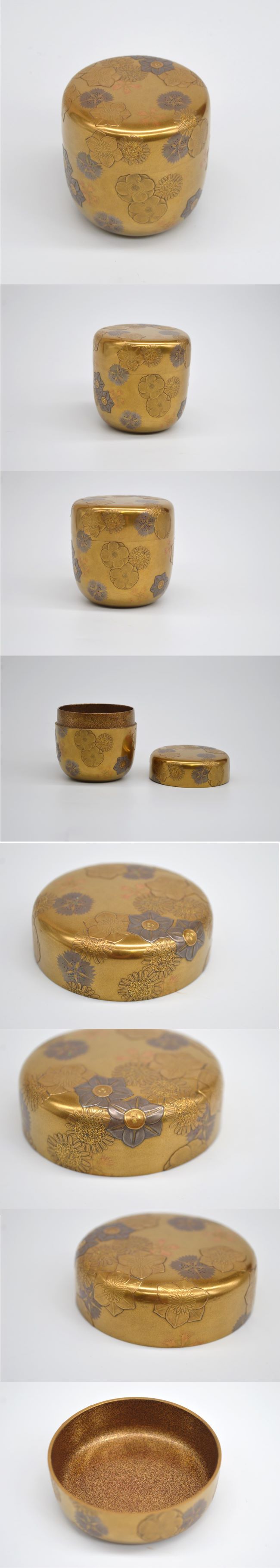 【商品名】 豊平翠仙(とよひら すいせん) 花寄蒔絵 大棗 作者: 豊平翠仙(1901年~1967年) 商品サイズ: 幅 約7.7cm 高さ 約7.2cm ※若干の誤差はご容赦ください。 付属品: 合わせ箱 状態: 無傷 花寄蒔絵は、翠仙の師である白山松哉が得意とした意匠で、 白山派を代表する蒔絵表現のひとつです。 本作はその系譜を受け継ぎ、 金地に草花を散らした華やかさと品格を兼ね備えた大棗です。 観賞用としてはもちろん、 お点前にも安心してお使いいただける状態です。 当社が出品している商品は、 事前にご連絡いただけましたら実物をご覧いただくことも可能です。 info@sagami-ya.com ※古美術品につき、 モニター環境等により実物と色味が異なる場合がございます。 あらかじめご了承ください。 |