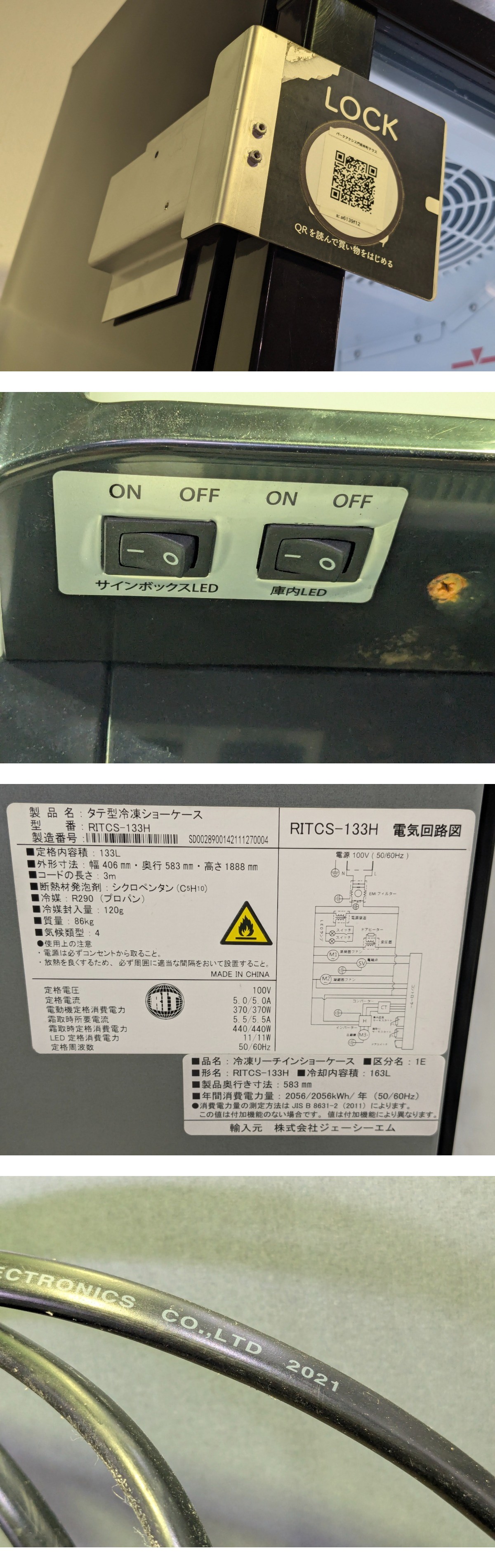 埼玉発 JCM タテ型冷凍ショーケース RITCS-133H 2021年製 86kg TRy mm(9) | |||||||||||||||||||||||||||||||||||||||||||||