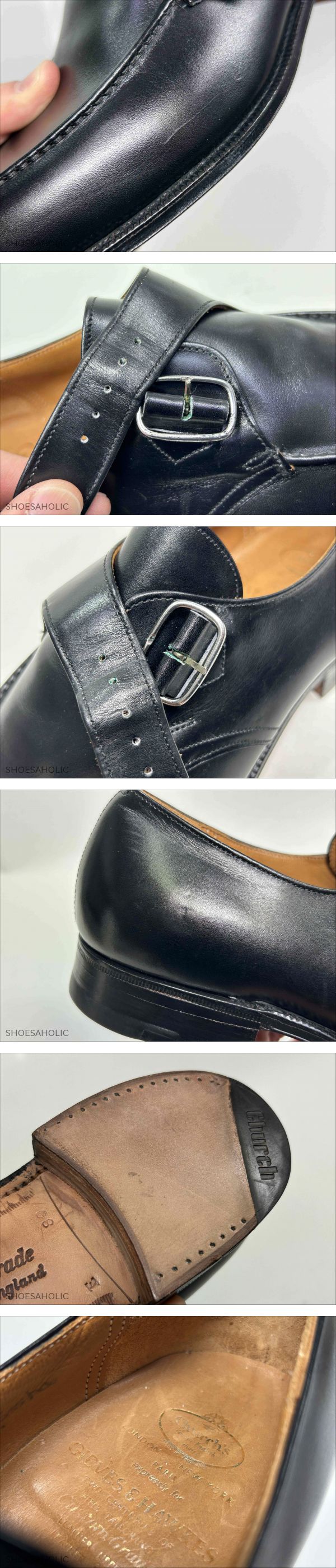 | 商品説明 | ●ご試着について:最下段の<特定商取引法>に記載のある東京都国立市の実店舗にてご試着可能です。 ●出品ID:042 ●管理コード:9260 ●ブランド:旧チャーチ(ギーブス&フォークス別注) ●商品詳細:シングルモンク #73 ●サイズ・ワイズ :8E ●右足のソールの実寸: 全長: 28.6cm 最大幅: 10.0cm ●カラー:ブラック ●素材:カーフ ●付属品 ( )箱 ( )シューツリー ( )その他( ) *上記のシューツリーに( 〇 )の記載の無い商品は撮影用のツリーのため付属しません。 *箱はヨレ、キレ、スレ、シミ等がある物もありますので、おまけとお考え下さい。 ●全体的な状態:A ( A:試着程度 B:使用数回 C:極上 D:美品 E:中古 F:一部訳あり) ●アッパーの状態 ( 〇 ) 試着程度品ですが試着シワ・保管スレキズがあります。 ( ) スレ、キズ、履きシワがあります。 ( ) 色ムラ、シミがあります。 ●ライニングの状態 ( 〇 ) 試着程度品ですが保管スレキズ・保管シミがあります。 ( )靴の内側に履きシミがあります。 ( )靴の内側にスレがあります。 ●ソールの状態 ( 〇 )試着程度品ですが試着スレキズ・保管シミがあります。 ( )ハーフラバーが貼ってあります。 ( )トゥはスティール・ラバー・レザーが付いています。 ( )ソールは交換されています。 ( )ヒールは交換されています。 ●特記事項 ・金具とストラップに青サビがあります。 ・保管時の押しキズがあります。 ・ソールに硬化があります。 ・左側面に保管キズがあります。 ーーーーーーーーーーーー<お知らせ>ーーーーーーーーーーーーー ●お問い合わせについて:質問フォーム またはお電話でお願い致します。 ●実店舗について:店名:シューホリック 所在地:東京都国立市東2-6-6 フジノビル2階 ●営業日について:公式サイト上トップページの「インフォメーション」にてご確認下さい。 ●発送について:定休日・臨時休業日・土日祝日・休暇中 以外の営業日に行います。 ●送料について:ヤマト宅急便 元払い(日時間指定・営業所止め可)の全国一律1000円(北海道、沖縄は+500円) ●入札について:落札後24時間以内に必ず連絡の取れる方、落札後3日以内に決済可能な方のみご入札下さい。 ●お値引きについて:承っておりません。 ●返品について:商品の不備や記載ミス以外、気に入らなかった、サイズが合わなかったなどお客様都合での返品は受け付けていません。 ●評価について:評価は基本的に当ストアよりは差し上げておりません、ご希望の場合お知らせ下さい。 ●同時販売について:実店舗や公式サイトでも併売をしているため、以外で完売後に上で掲載の取り下げが間に合わない場合があり、ご落札後のキャンセルをさせて頂く場合があります。 ●特定商取引法に関する表記● ・販売業者 株式会社 シューホリック ・事業内容 高級靴・高級鞄を専門に販売、輸入および買取業務。 ・運営統括責任者 井上 祐太 ・古物営業許可証 株式会社 シューホリック 東京公安委員会 308891606450 ・郵便番号 〒186-0002 ・住所 東京都国立市東2-6-6 フジノビル2階 ・電話番号:042-508-3596 会社携帯電話:070-4100-5694 ・お支払い方法 かんたん決済 ・お支払い期日 ご落札後 3日以内 .26 |