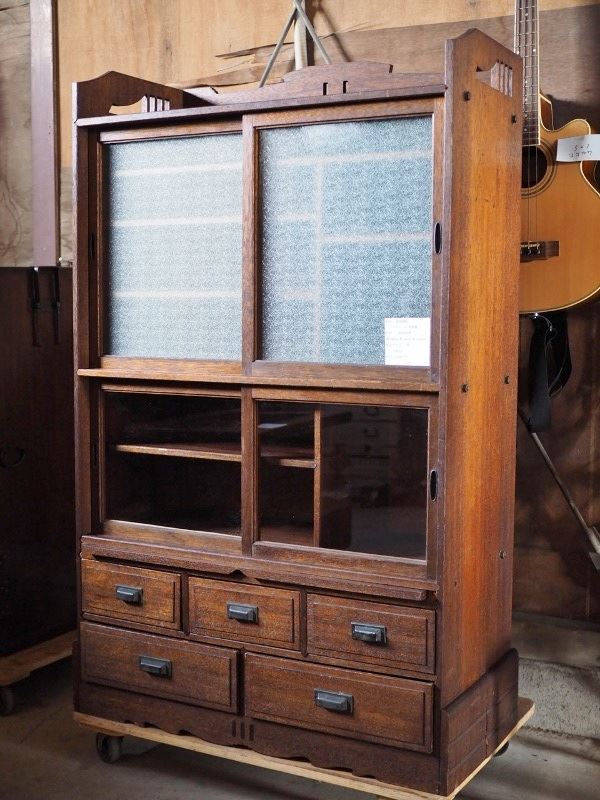 | アンティーク食器棚 作業台付 楢材で重厚 昭和初期 古録展 送料別 Mサイズ 中古 品番S10394 | |
