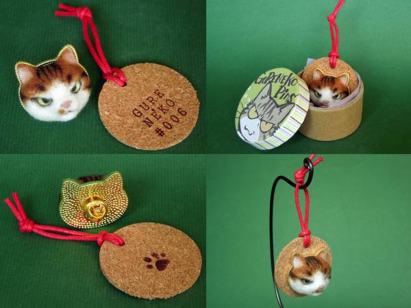 ** ぐれねこ屋/ピンズ#006 キジ白ホクロ 立体ピンバッジ **