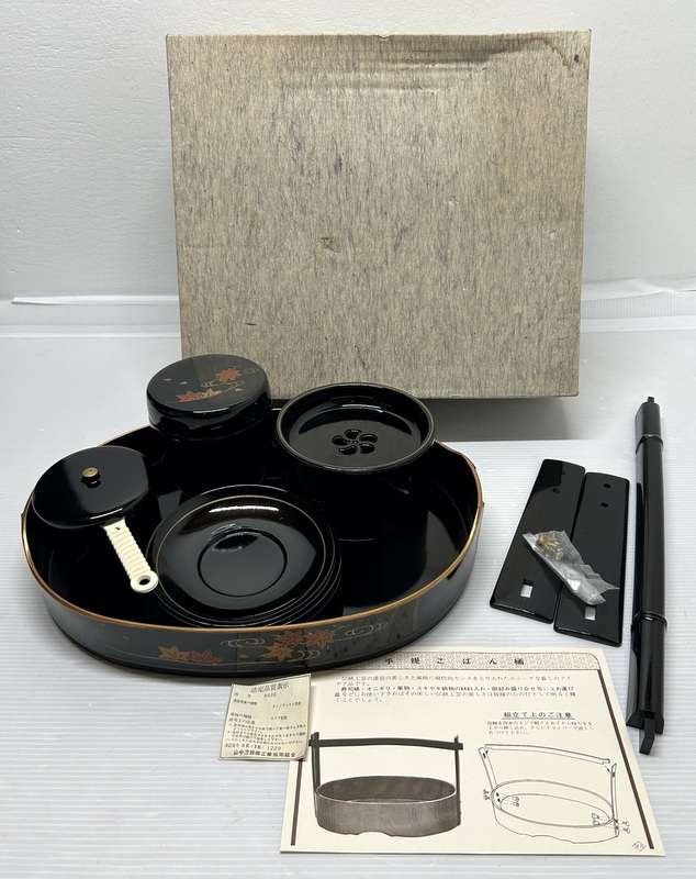 未組立未使用微美品 山中漆器 小判盆茶の間セット 紅葉 手堤こぼん桶 茶筒 茶入