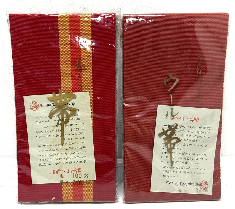 未使用 きよ水 純毛つづれ帯/ウール帯 2点セット 毛100% エンジ色 半幅帯
