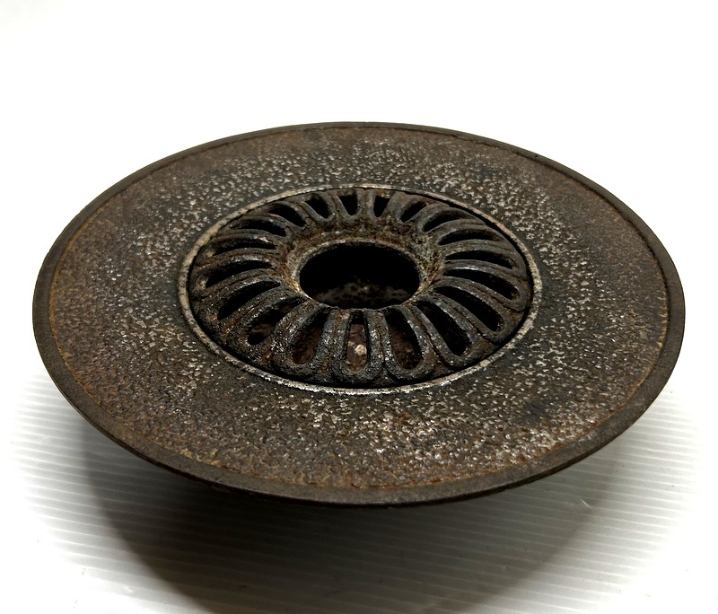 鉄製 鋳物 1968年物 丸型菊紋 灰皿 直径19cm 鉄器 アイアンアシュトレ