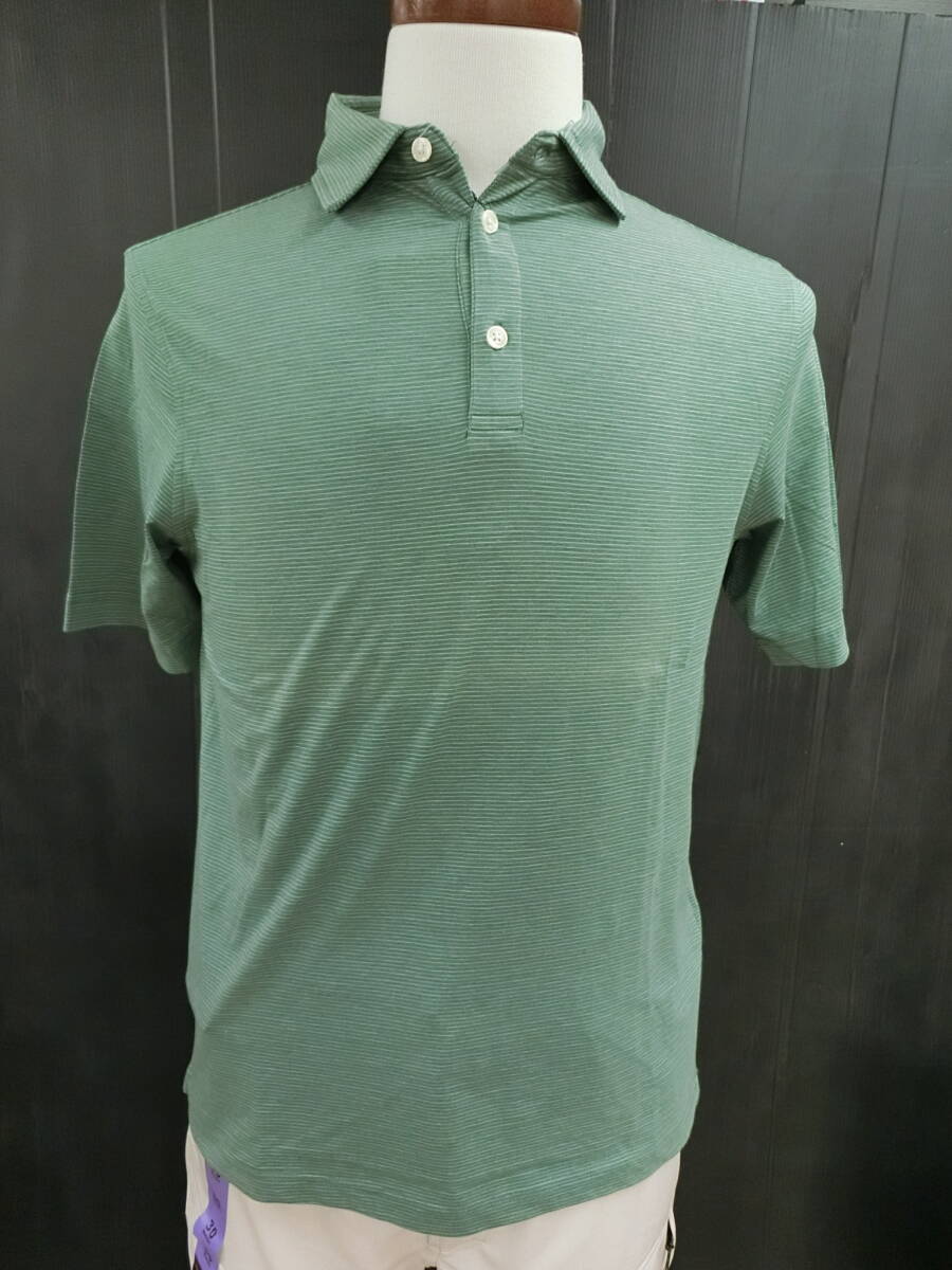 【送料無料】KIRKLAND 半袖ポロシャツ Sサイズ 緑・白細ボーダー