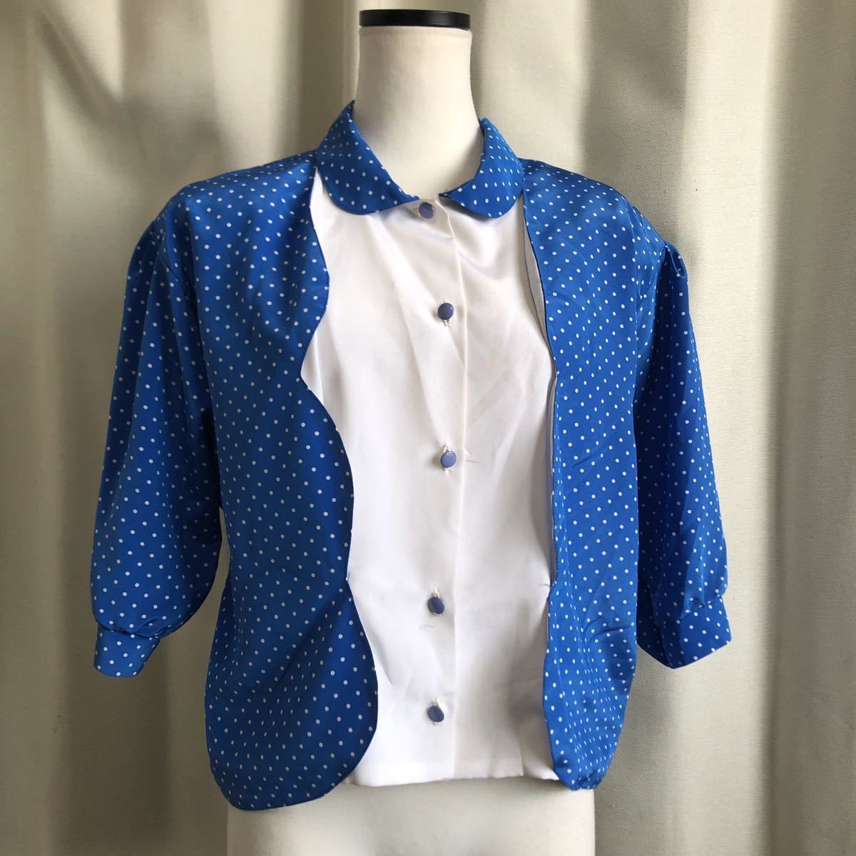 ブルーにドット柄が爽やか&スカラップ でガーリーなヴィンテージトップスです。 ●白い部分にシミ汚れがあります。 フランス製 トルソーはレディース9号です。 |
