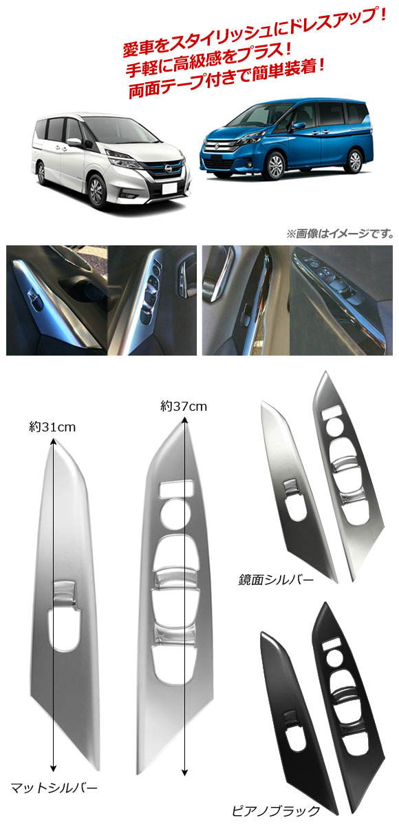 パワーウインドウスイッチカバー スズキ ランディ C27系 2.0G/2.0X/2.0S 2016年12月~ マットシルバー ABS樹脂製 收藏