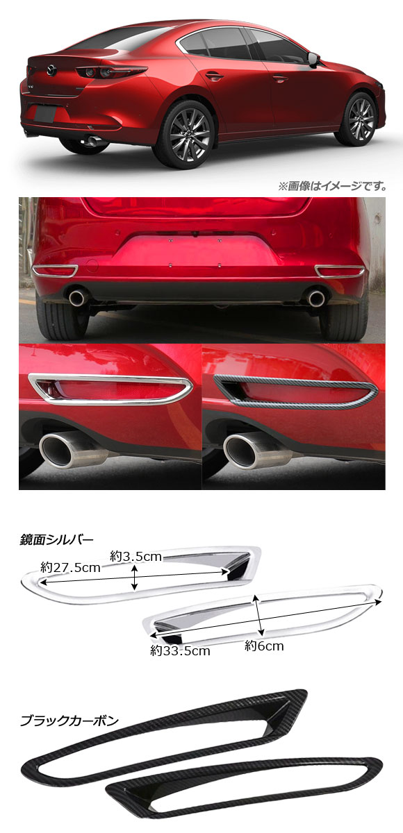 リアリフレクターガーニッシュ マツダ MAZDA3 BP系 セダン専用 2019年05月~ ブラックカーボン ABS製 AP-RF066-BKC 入数:1セット(左右) 收藏