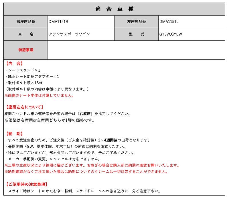 [N SPORT]GY3W,GYEW アテンザスポーツワゴン純正シート用ゲーミングシートスタンド(キャスター無し)[6×6ポジション] 收藏