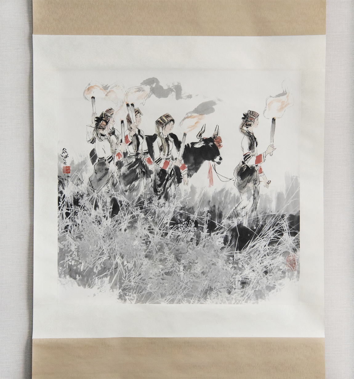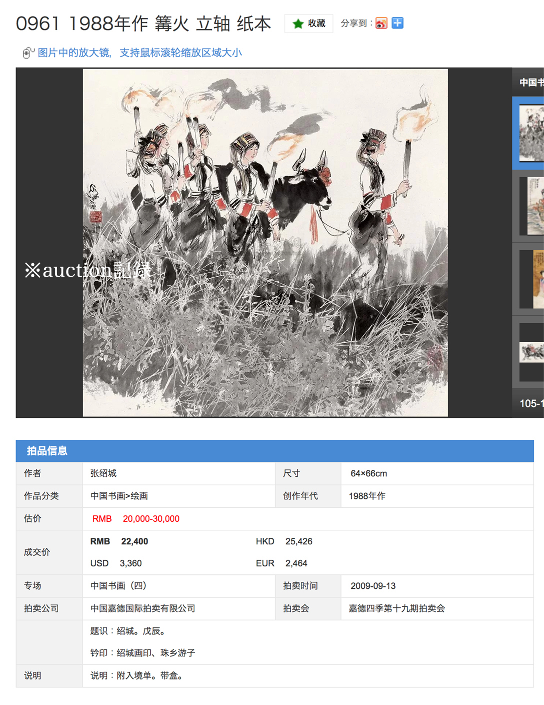 張紹城 1988年作 篝火 設色紙本 立軸 中国嘉德拍賣出品作 真作保証 张绍城 中国 近現代絵画 現代アート 收藏