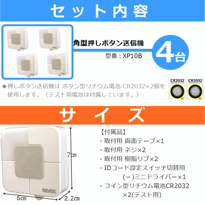 【平日15時まで即日出荷】増設用 リーベックス XPシリーズ 角型押しボタン送信機(XP10B) 4個【呼び出しベル ワイヤレス ナースコール】 收藏
