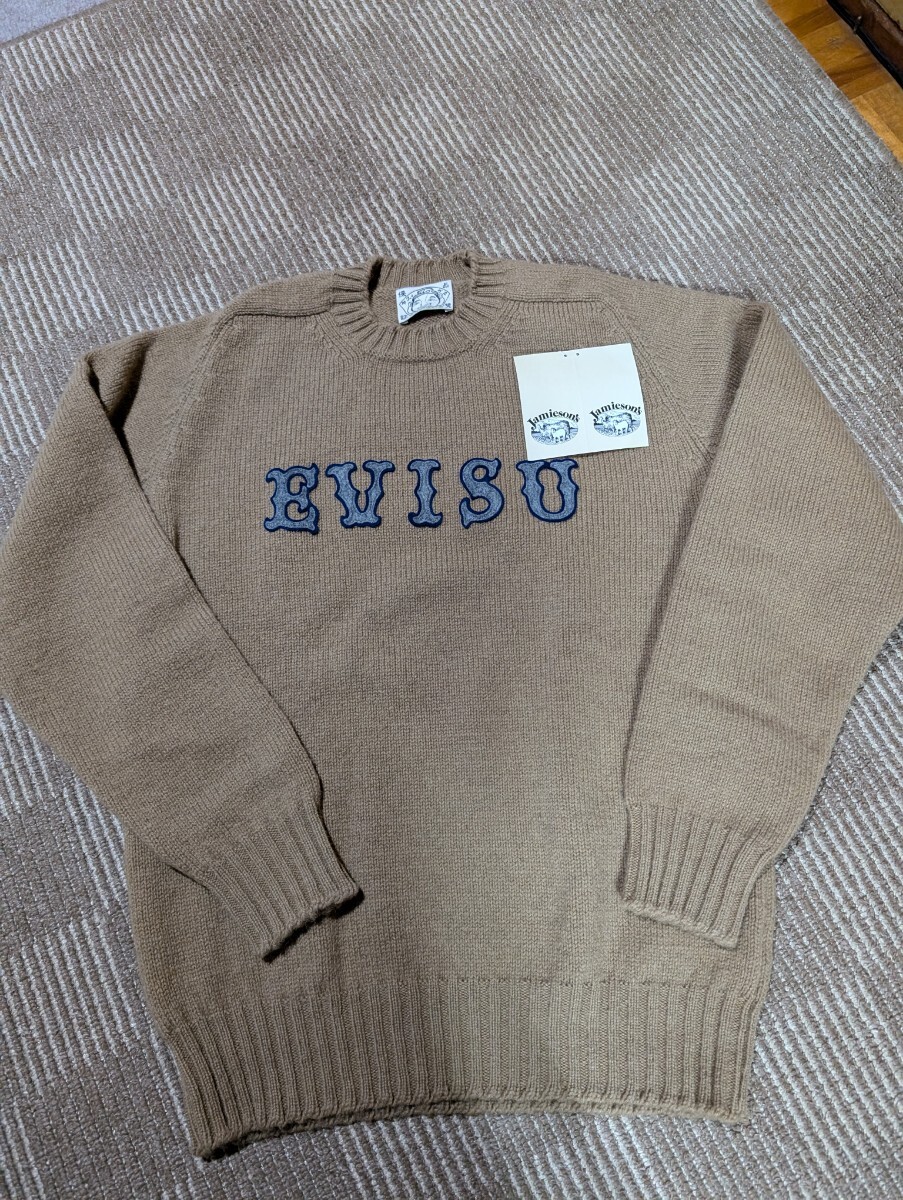 EVISUのジャミンソンセーターになります。新品未使用です。タグもついたままです。サイズ表記は40で、平置き着丈65センチ身幅50センチくらいで通常のM〜Lくらいのサイズになります。アップリケのついてる商品ですのでサンプル品で購入しました。