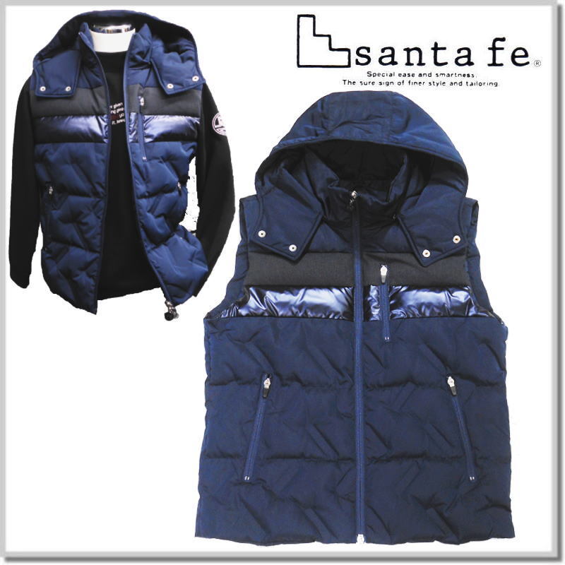 新品未使用! サンタフェ santa fe エンボス加工切替ダウンベスト 56801-98(NAVY)-50(XL) フード着脱 收藏
