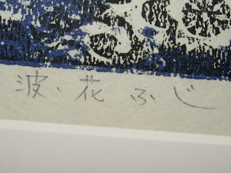 | KL29-5906[TOM]【真作】富張広司 木版画「波・花ふじ」額装 直筆サイン エディション | |