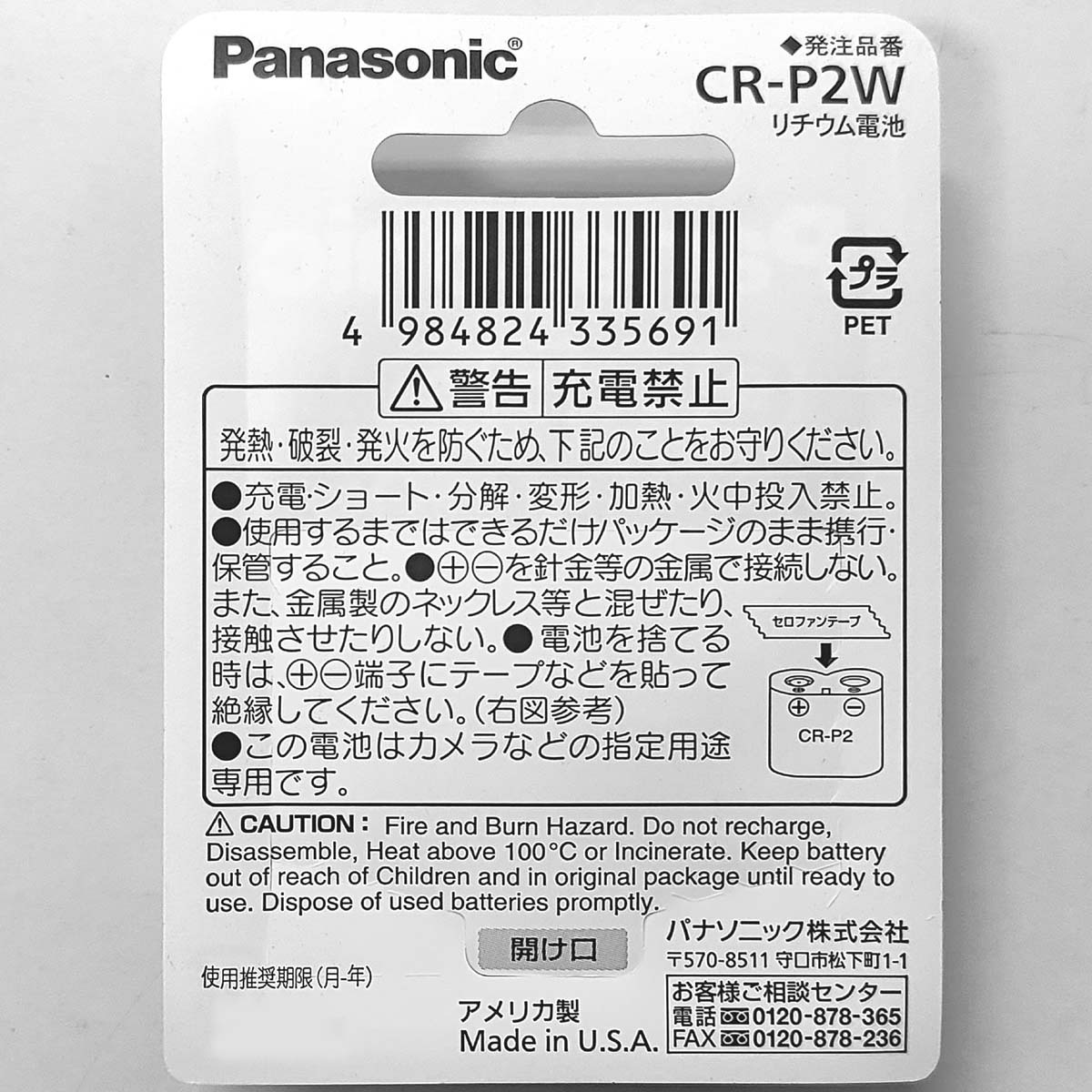 CR-P2 リチウム電池【1個】6V パナソニック Panasonic CR-P2W【即決】K223LA, EL223AP, DL223A, CR-P2R★4984824335691 新品 收藏