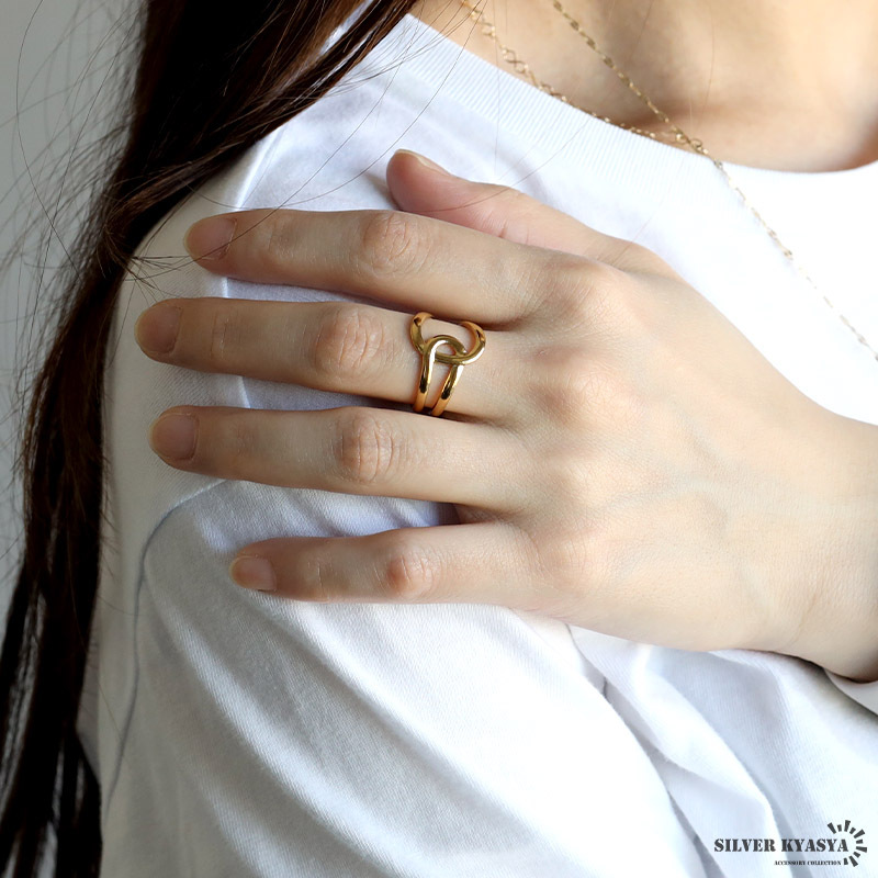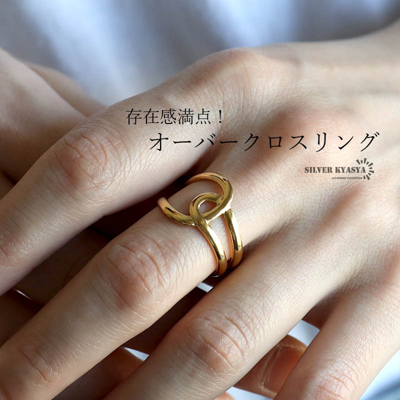 オーバークロスリング ニュアンスリング ゴールドリング 指輪 18KGP ゴールド ステンレス レディース 金属アレルギー対応 收藏