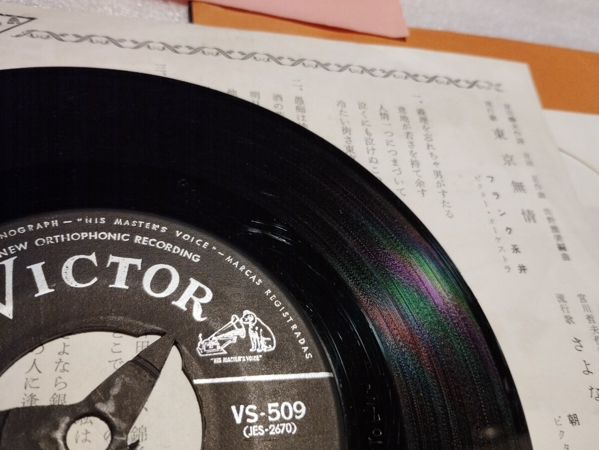 フランク永井 東京無情 / 朝倉ユリ さよなら銀座 シングルレコード 日本ビクター VS-509 昭和歌謡 流行歌 ムード歌謡 7インチ アナログ盤 收藏