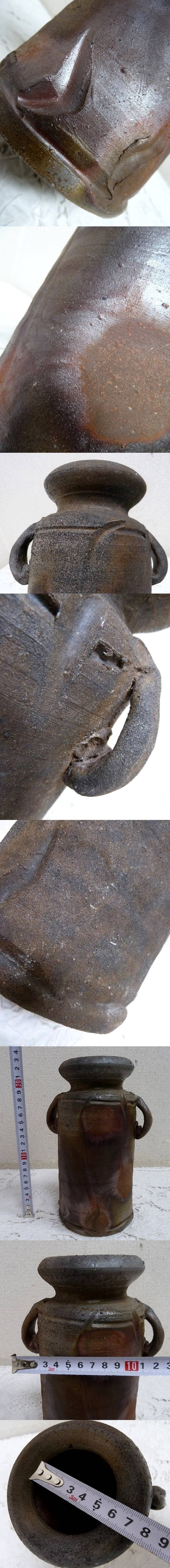 (☆BM)備前焼 花器(0419-①)共耳付き 高さ23㎝/1.7kg 華道具 花瓶 日本伝統工芸 陶器製 收藏